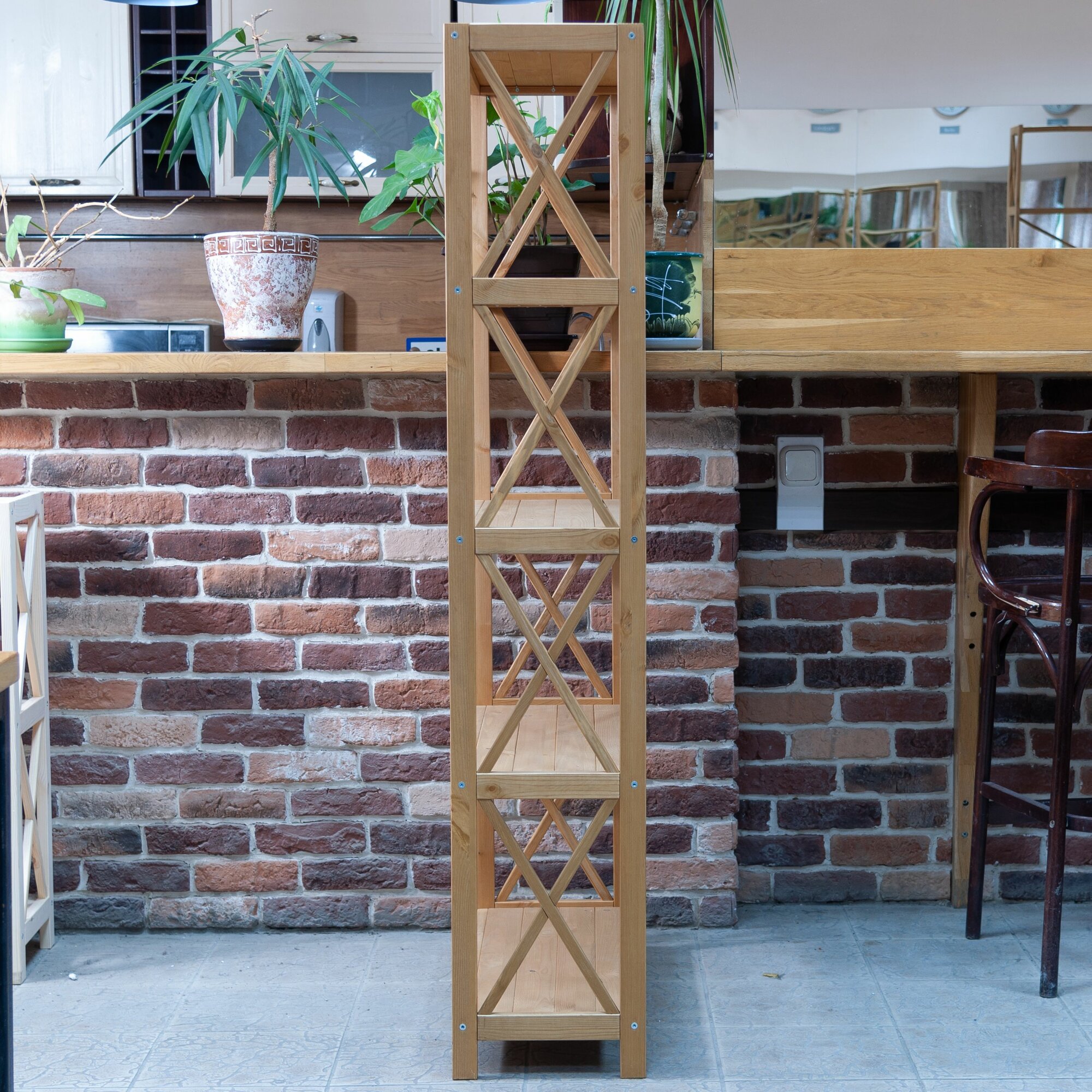 Купить Стеллаж деревянный напольный Юск из массива сосны 5 полок, натуральный бейц