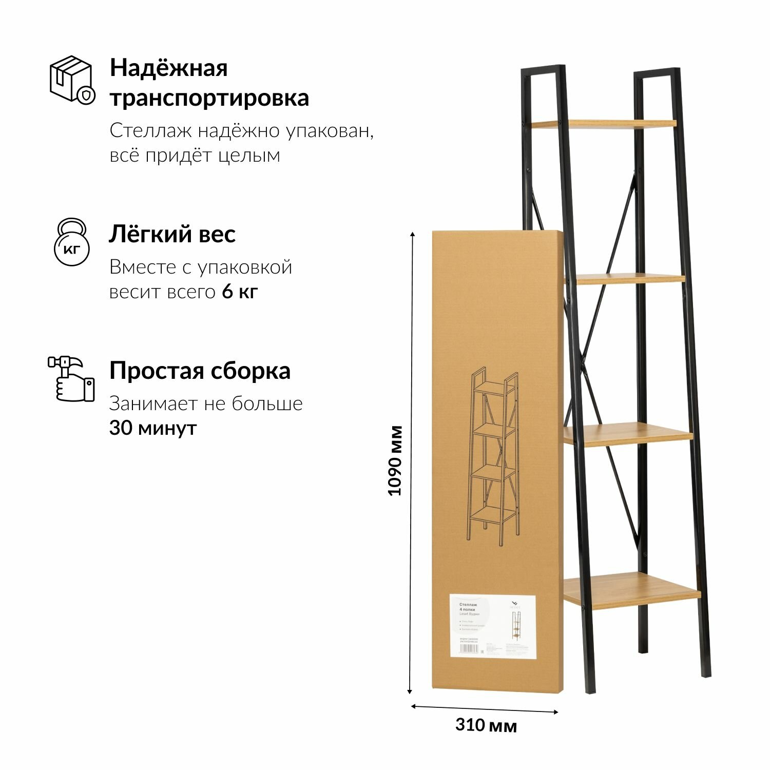 Стеллаж узкий Вудми, 4 полки, Дикий дуб