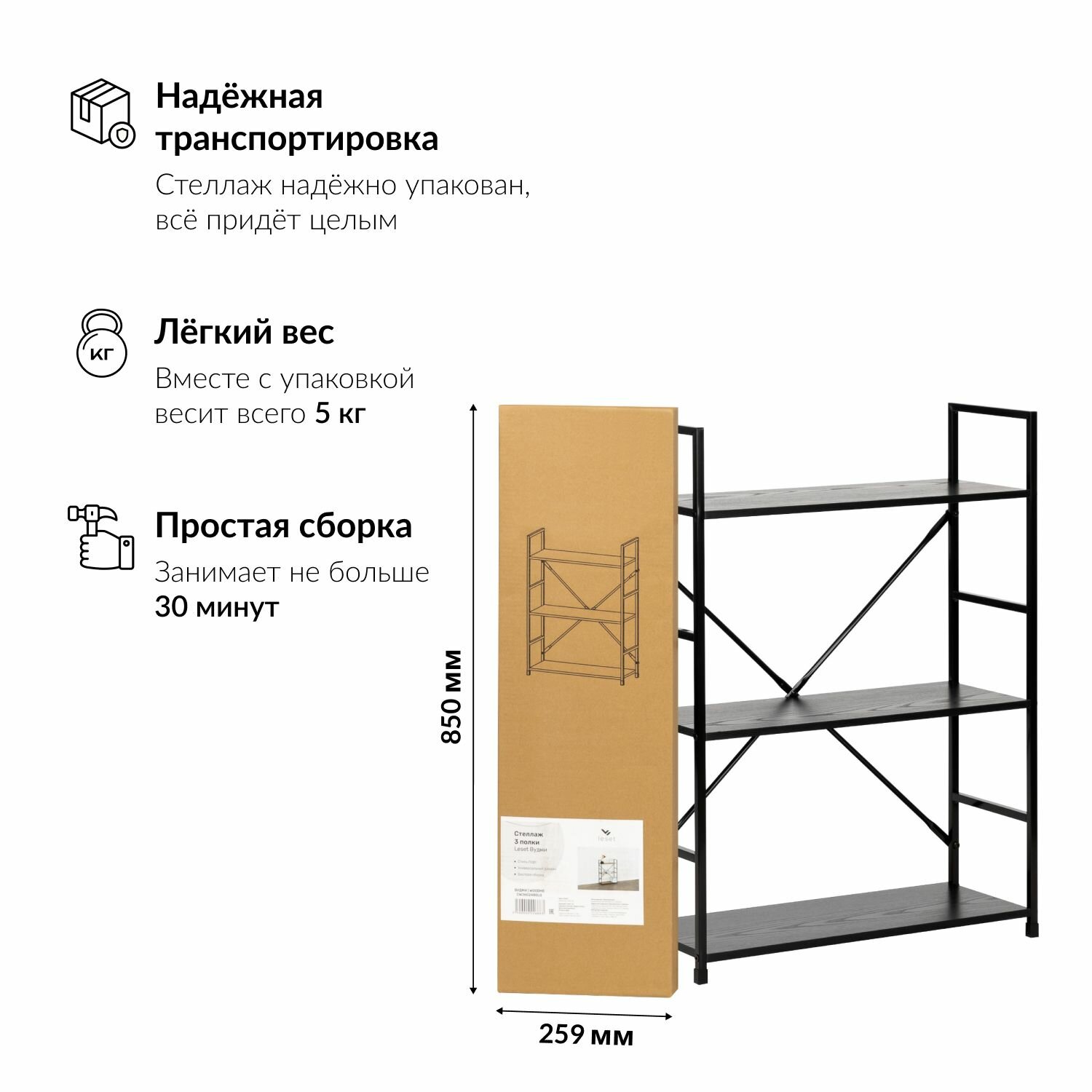 Стеллаж широкий Вудми, 3 полки, Черный дуб интересное: