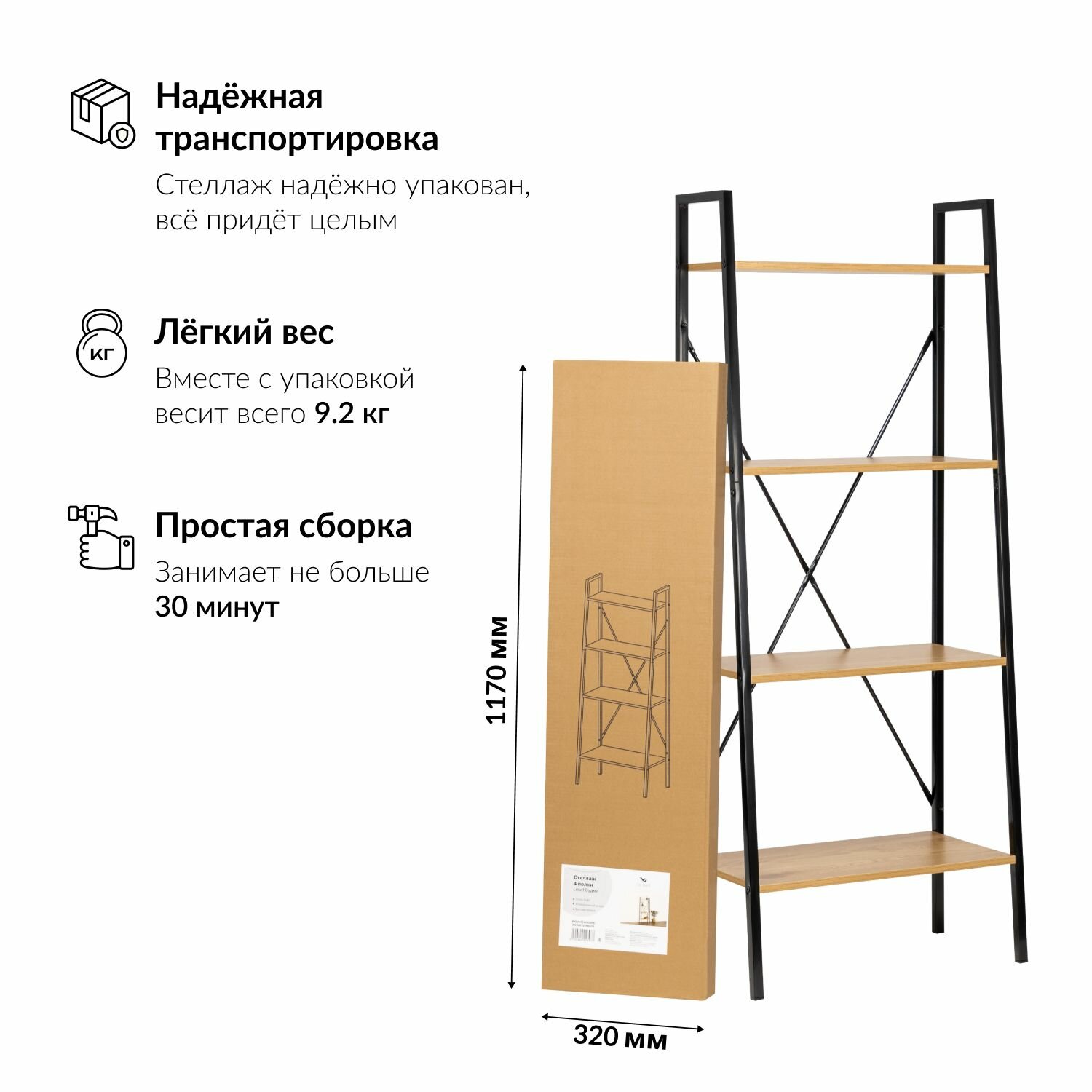 Стеллаж широкий Вудми, 4 полки, Дикий дуб
