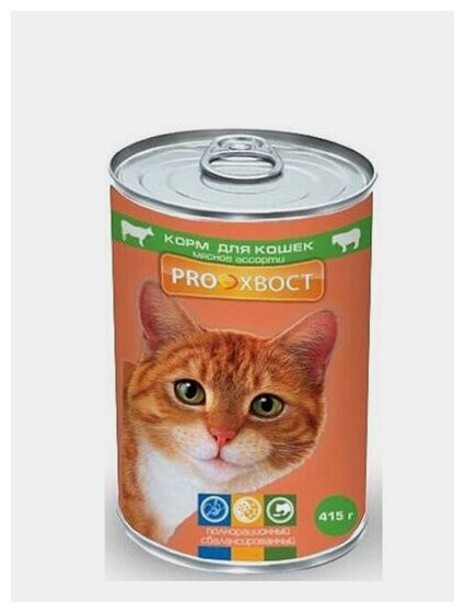 Корм консервированный Proхвост для кошек мясное ассорти, 415гр. Корм для кошек влажный