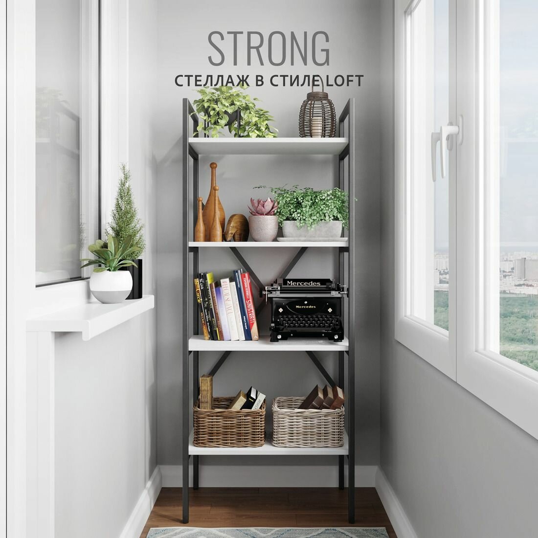 Стеллаж STRONG mini loft, белый, модульный, напольный с 4 полками, 147х40х35 см, гростат