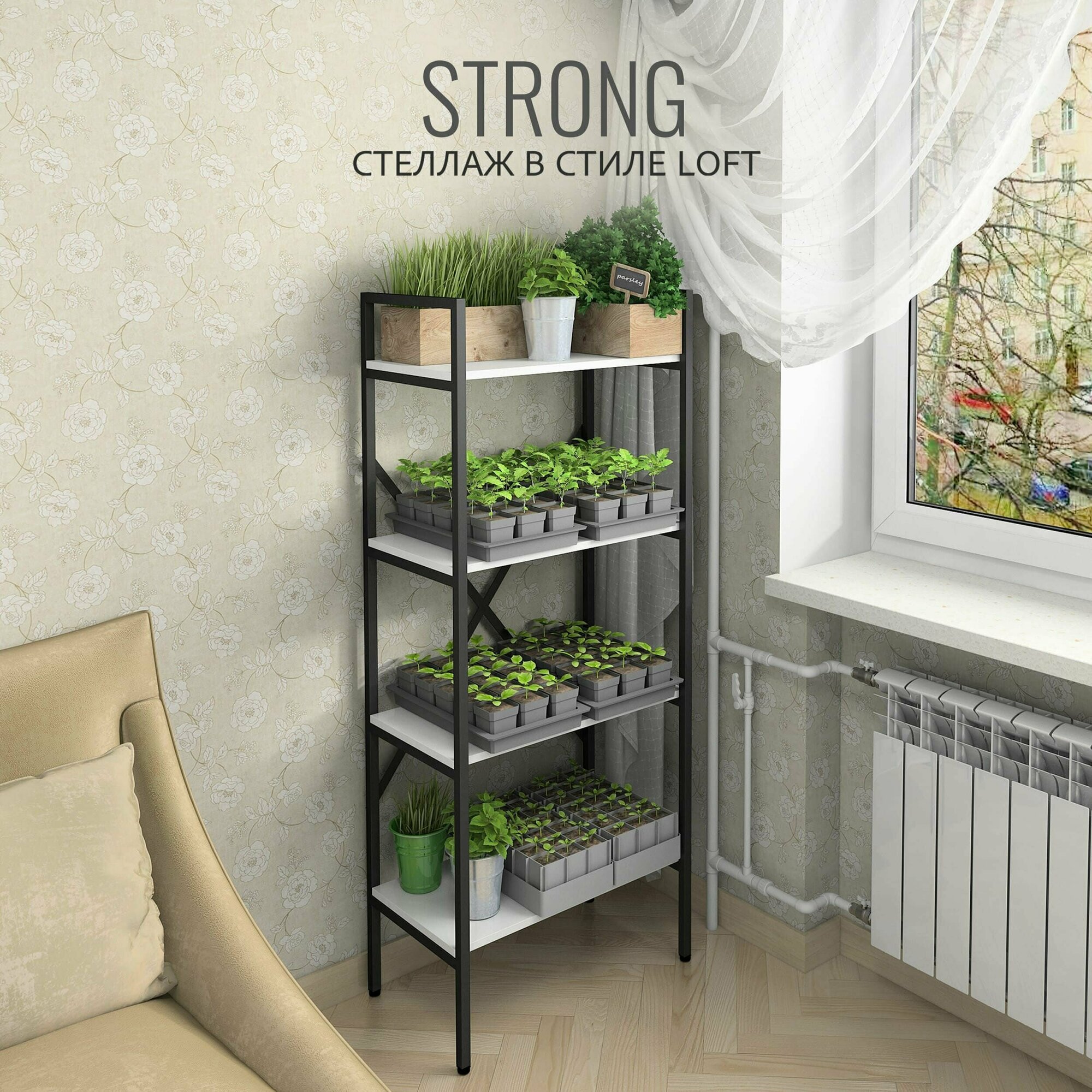 СохранитьСтеллаж STRONG loft, белый, металлический напольный с 4 деревянными полками, шкаф стеллаж для рассады, 147х60х35 см, гростат интересное: