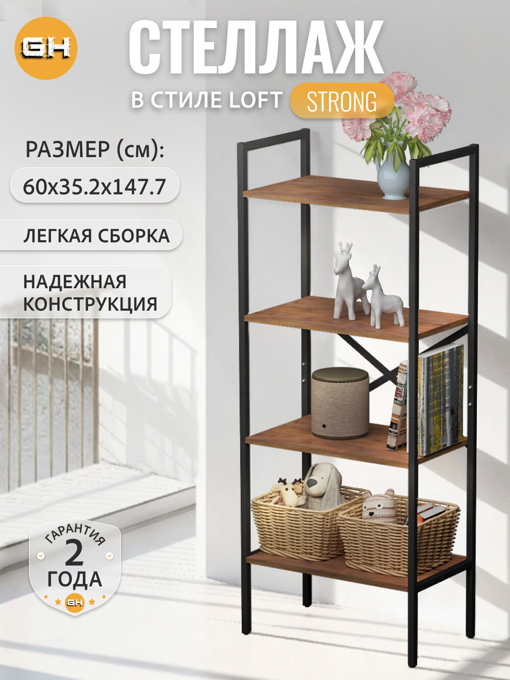 СохранитьСтеллаж STRONG loft, коричневый, металлический напольный с 4 деревянными полками, шкаф стеллаж для рассады, 147х60х35 см, гростат интересное: