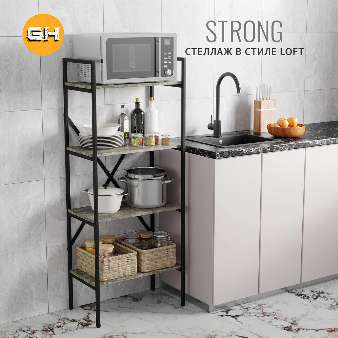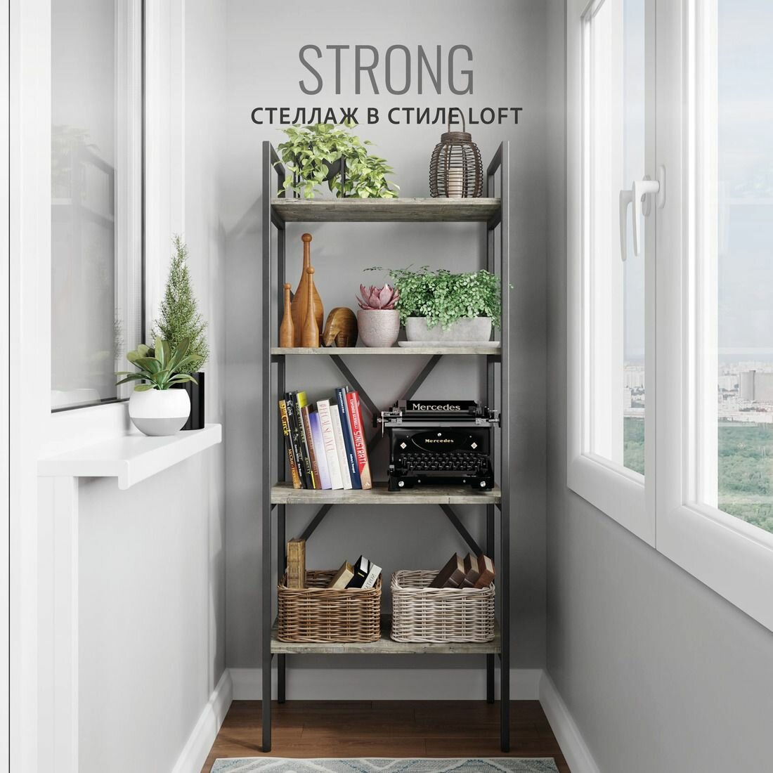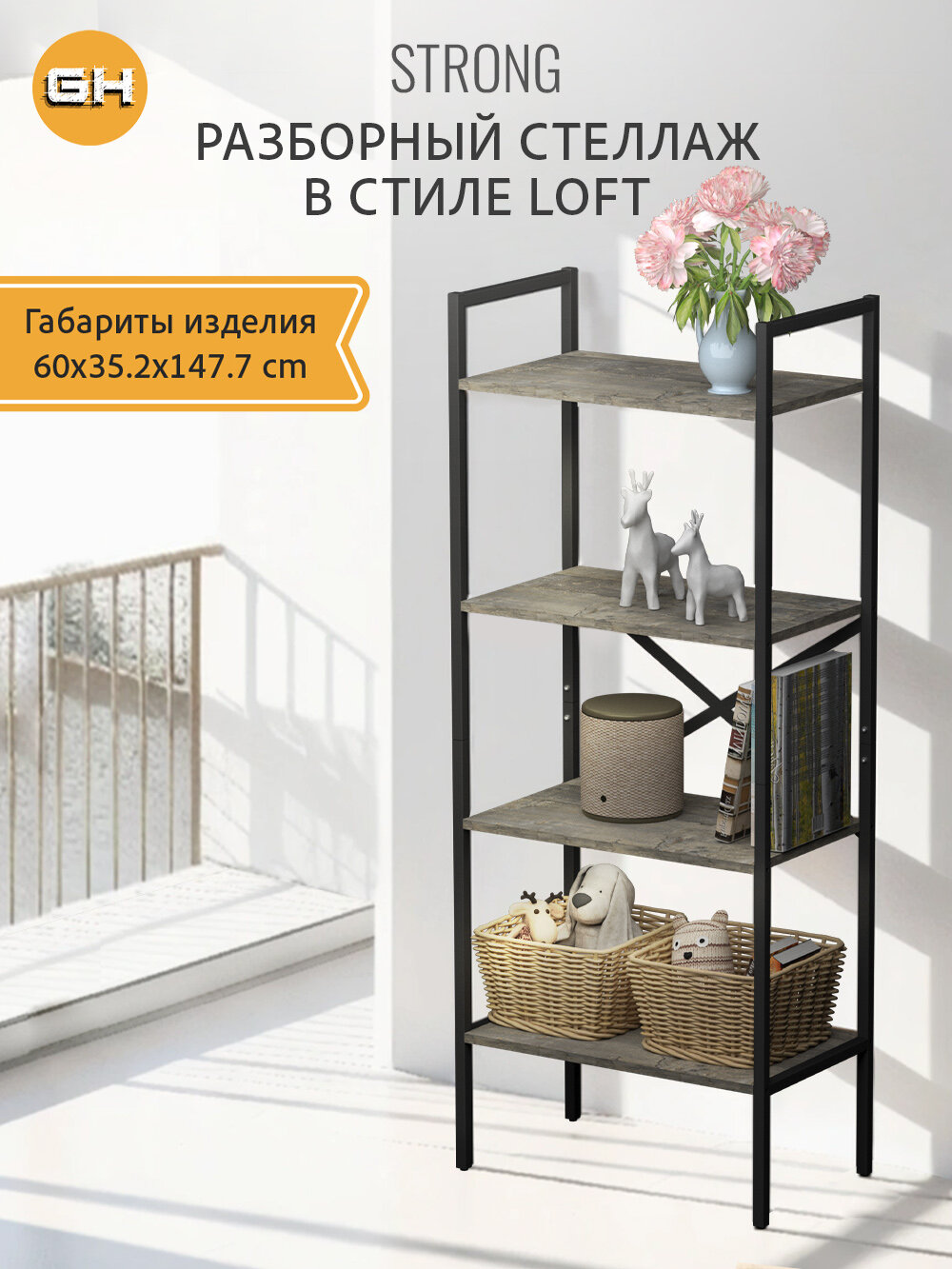 Стеллаж STRONG mini loft, серый, модульный, напольный с 4 полками, 147х40х35 см, гростат
