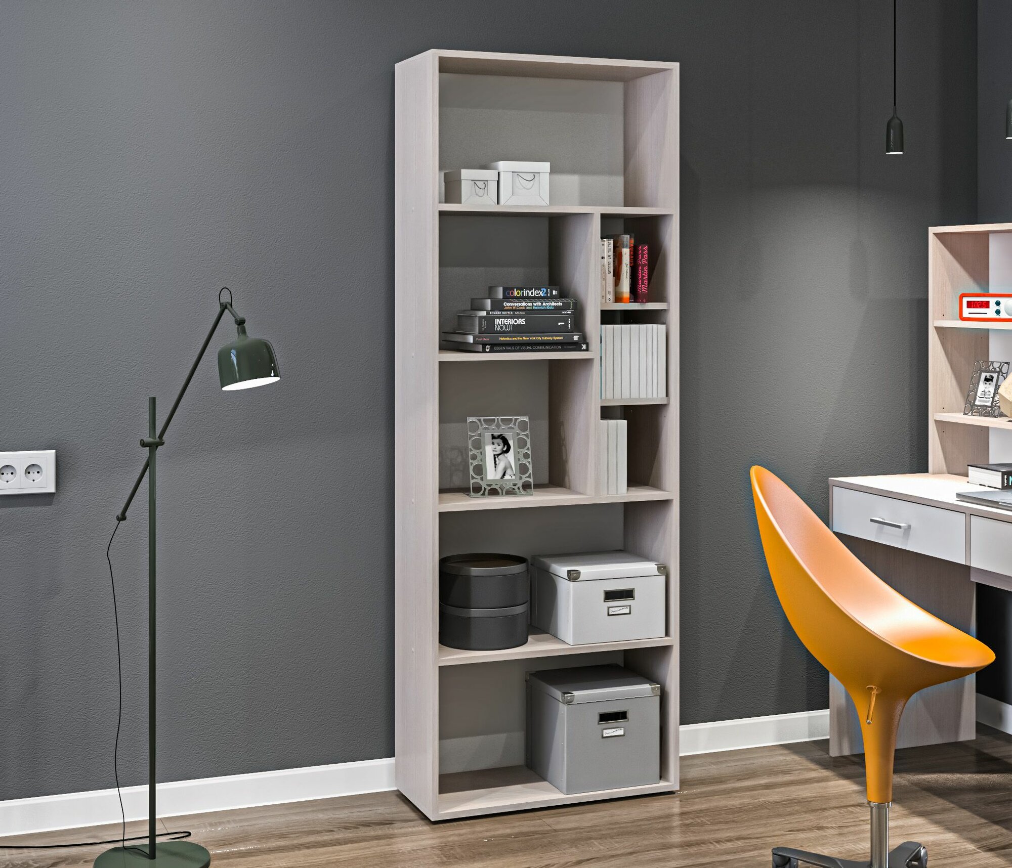 Стеллаж деревянный Нонтон Симпл графит 40.2x51.4x190 см, с ящиками