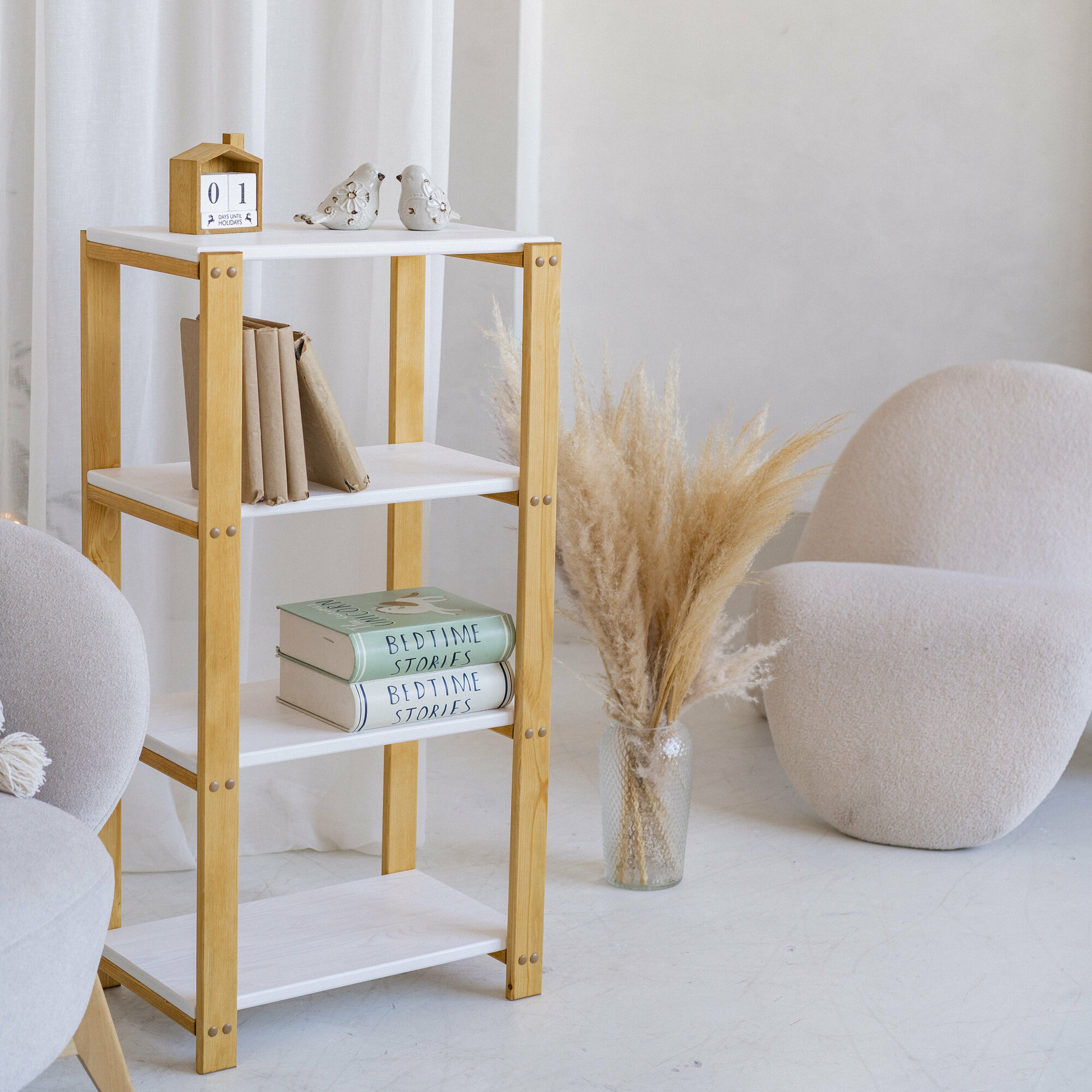 Стеллаж деревянный белый сосна 100х50х34 стеллаж для ванной этажерка напольная