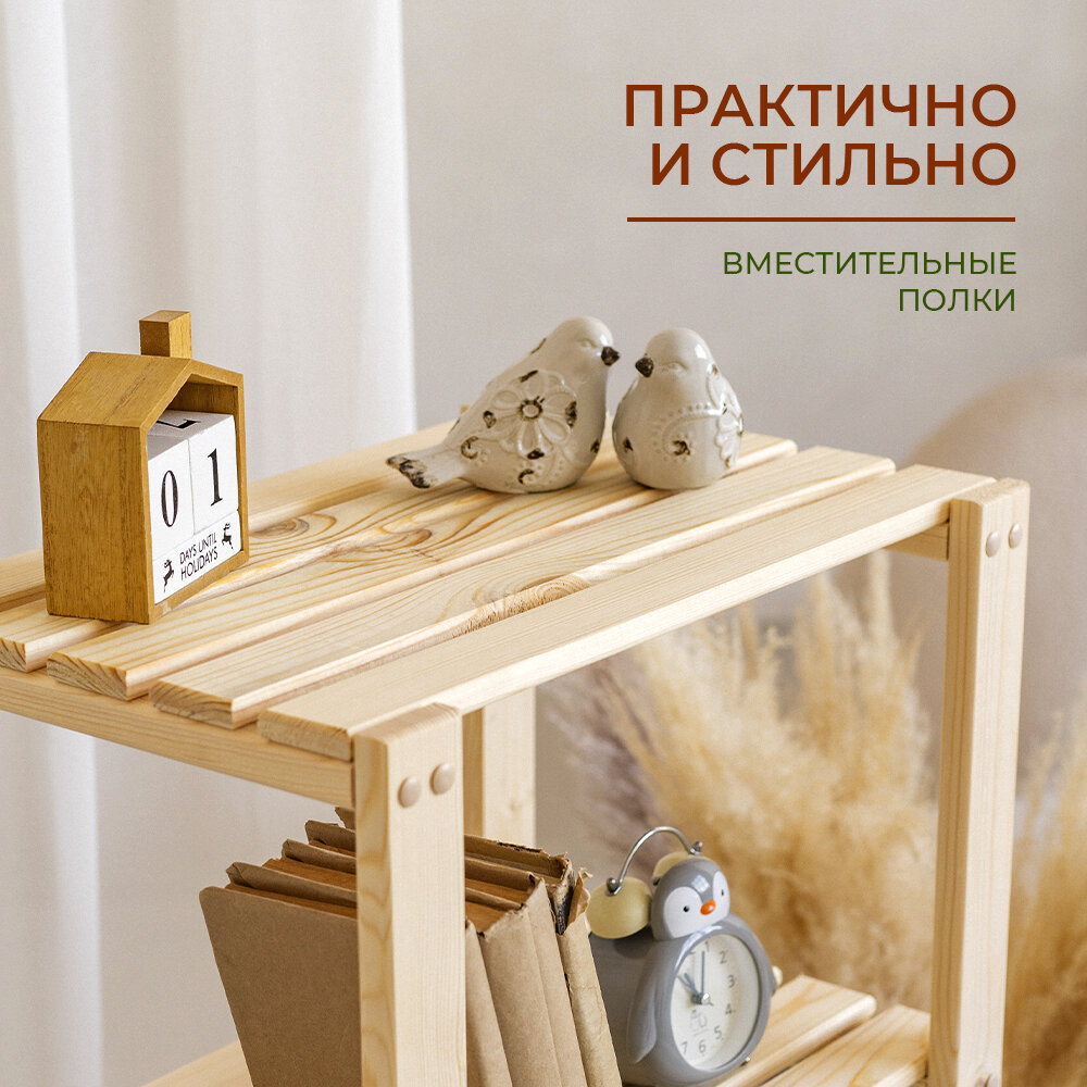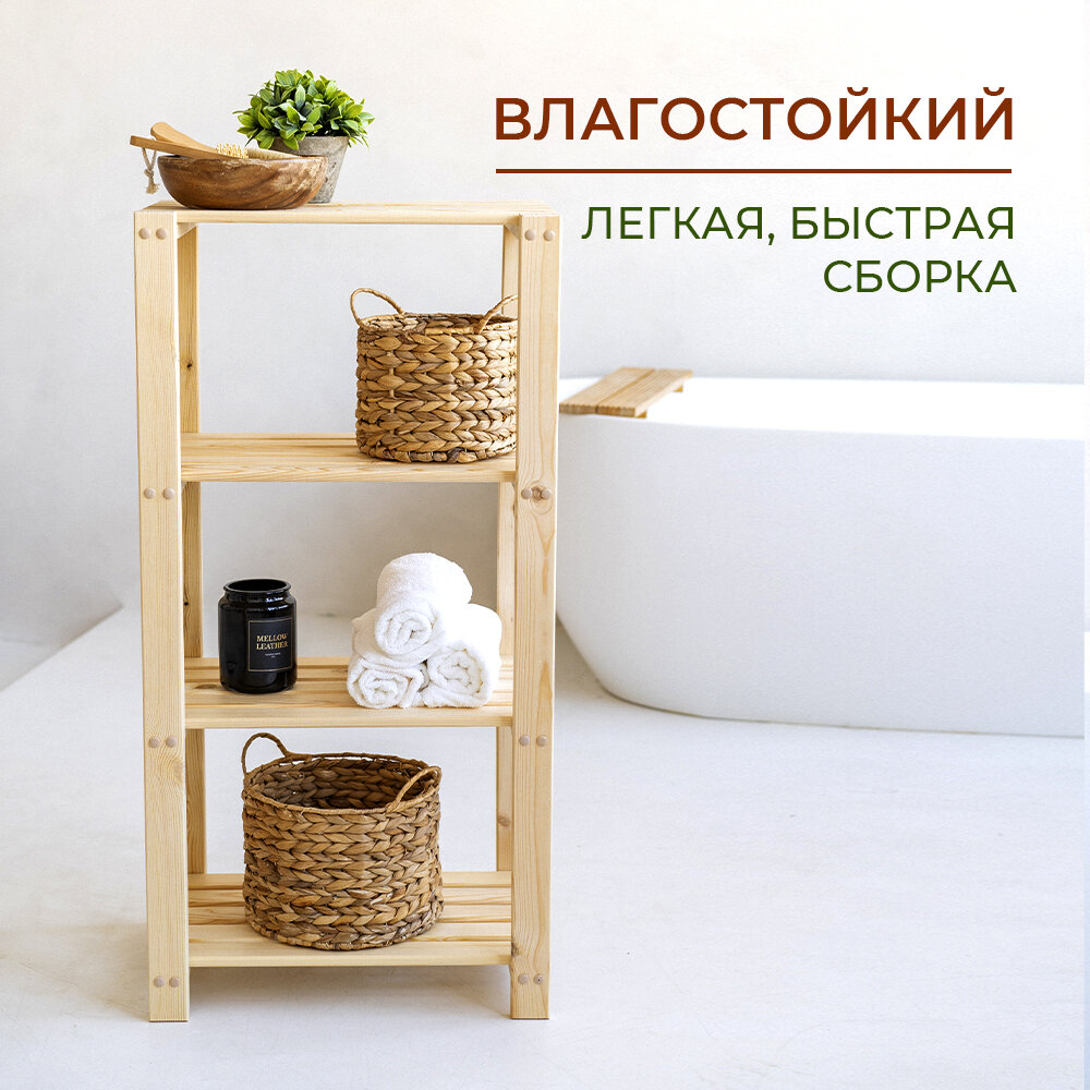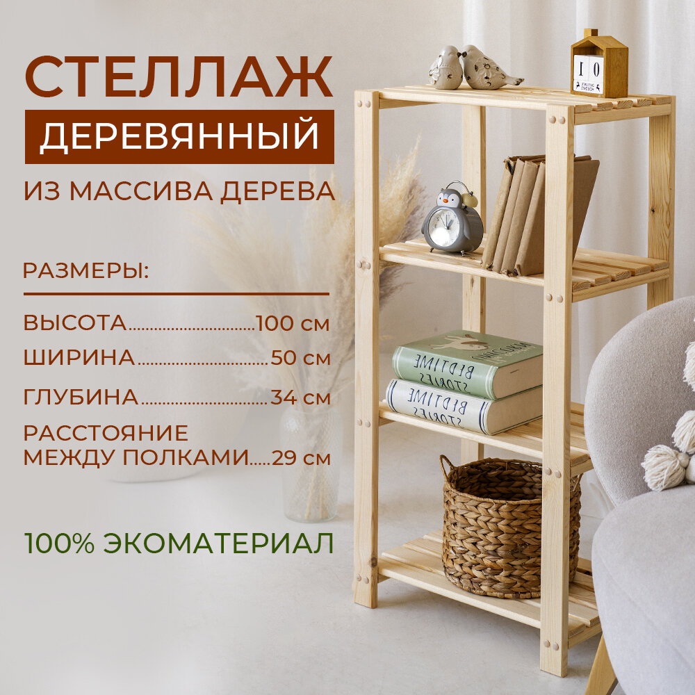 Стеллаж для ванной, книг и игрушек из натурального дерева с 4 полками, 100х50х34 см, цвет сосна интересное: