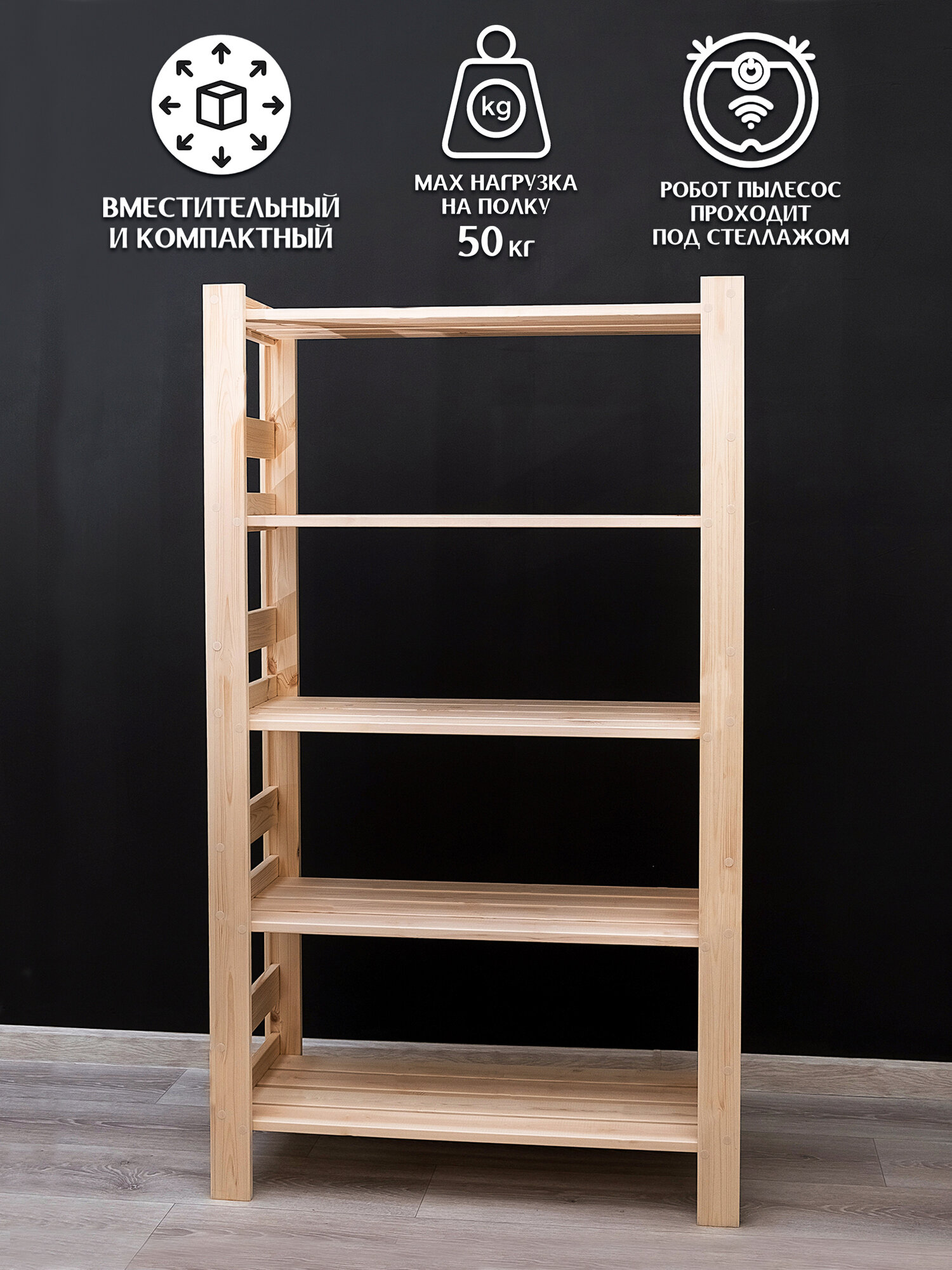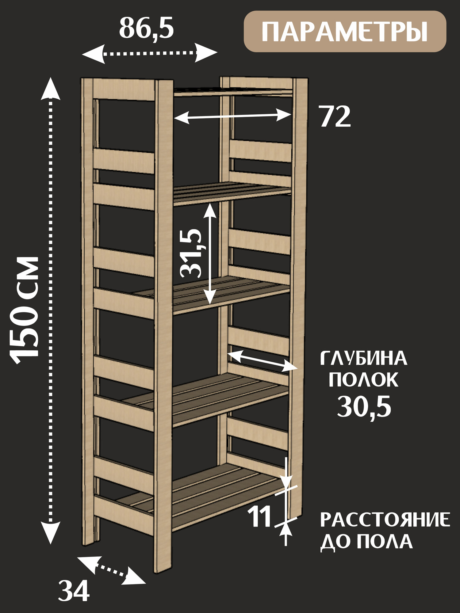 Стеллаж деревянный повышенной прочности мебельного качества для хранения в ванной на кухне для книг и игрушек 5 полок