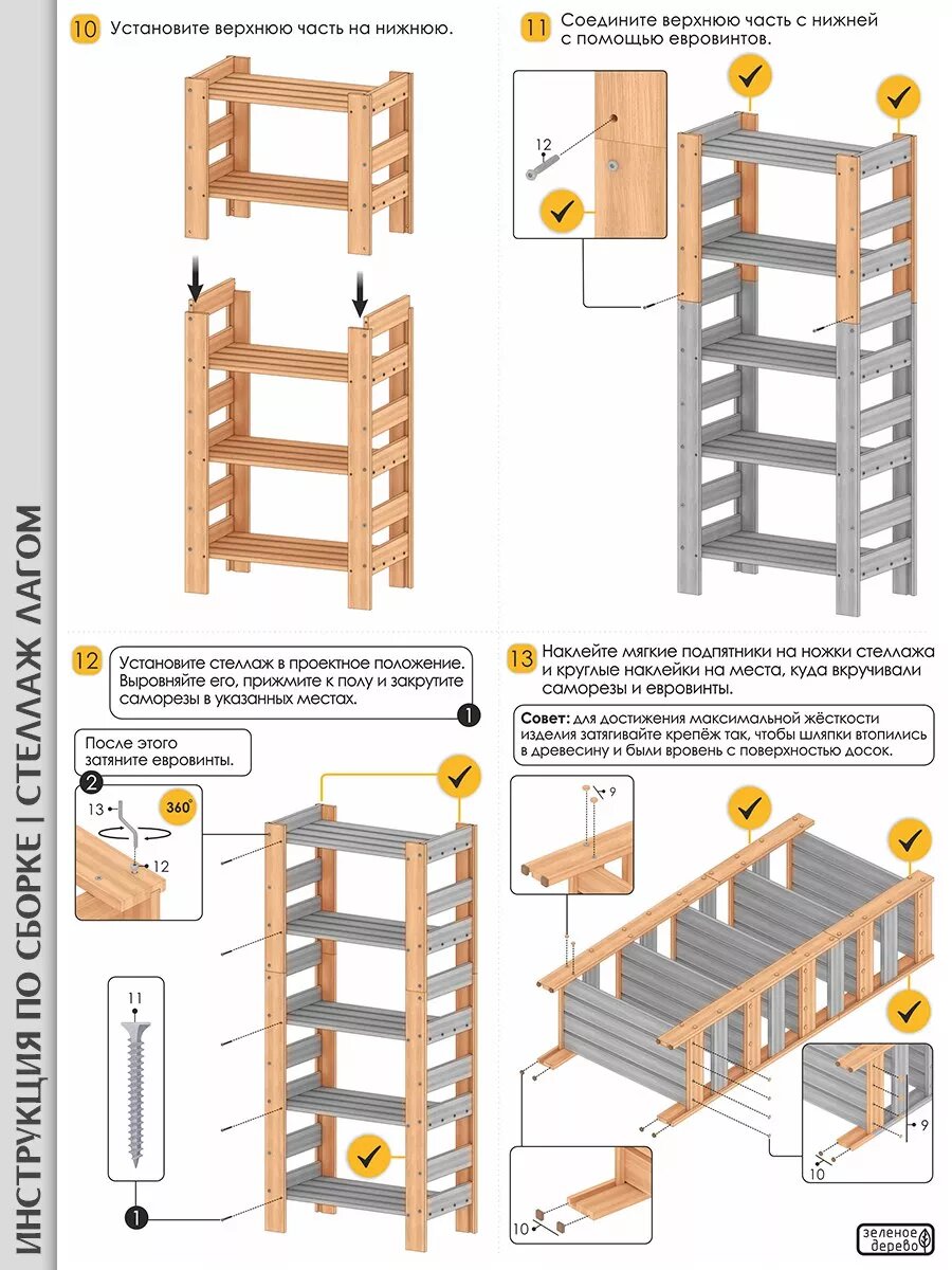 | Дополнительная информация | Собственное производство стеллажей позволяет добиться максимального качества. Используя высокоточные технологии обработки древесины, получаем идеально отшлифованные, гладкие детали из дерева. Надёжная конструкция на евровинтах прослужит много лет. Упаковка из прочного картона обеспечит доставку изделия в лучшем виде! |
