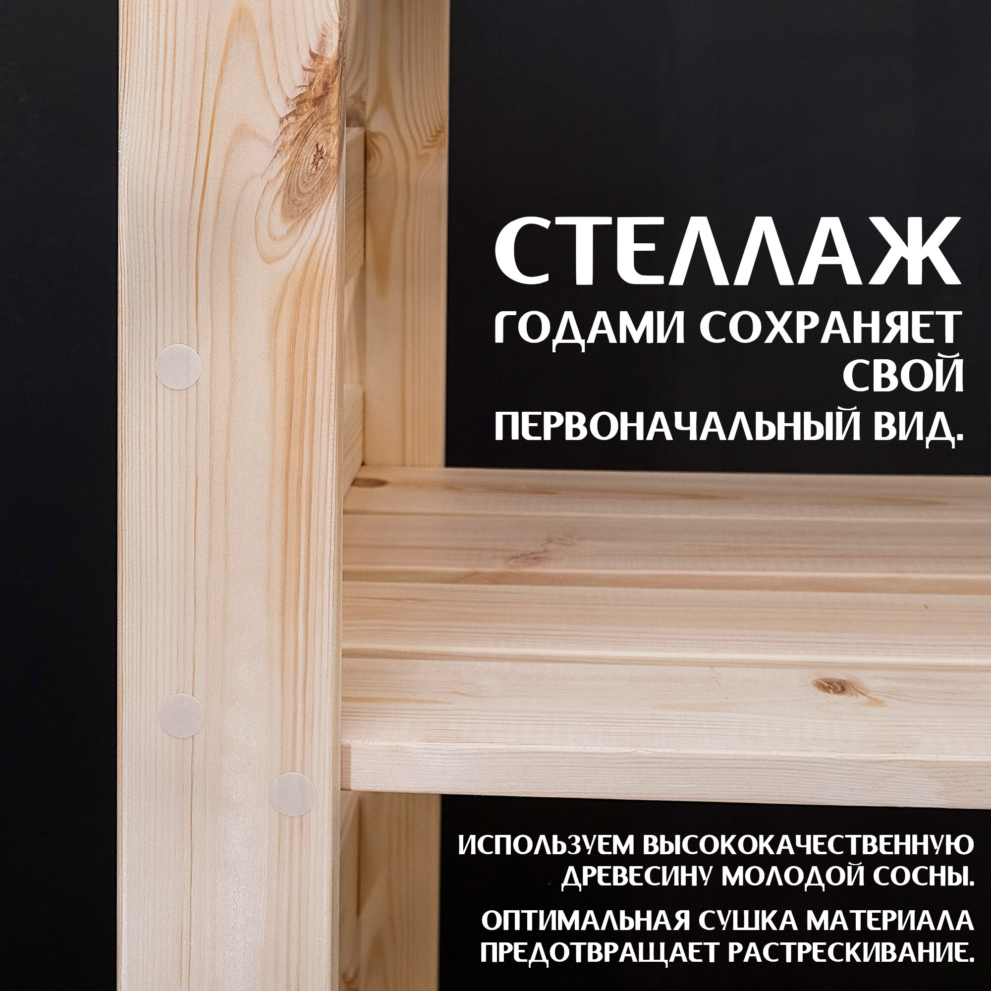 | Дополнительная информация | Собственное производство стеллажей позволяет добиться максимального качества. Используя высокоточные технологии обработки древесины, получаем идеально отшлифованные, гладкие детали из дерева. Надёжная конструкция на евровинтах прослужит много лет. Упаковка из прочного картона обеспечит доставку изделия в лучшем виде! |