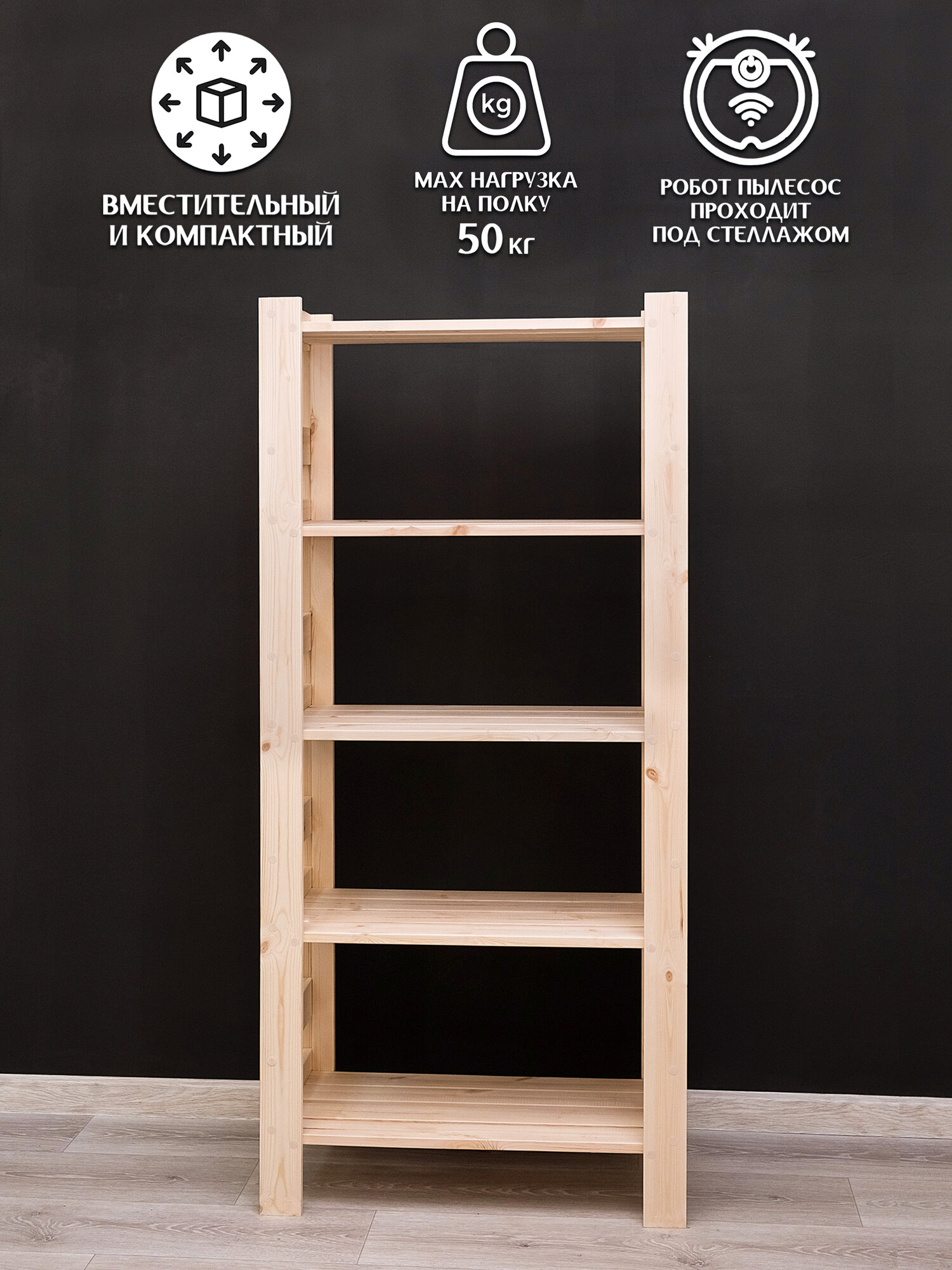 Купить Стеллаж деревянный повышенной прочности мебельного качества для хранения в ванной на кухне для книг и игрушек 5 полок