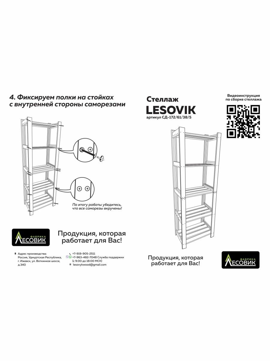 Стеллаж деревянный шлифованный 5 полок, Lesovik интересное: