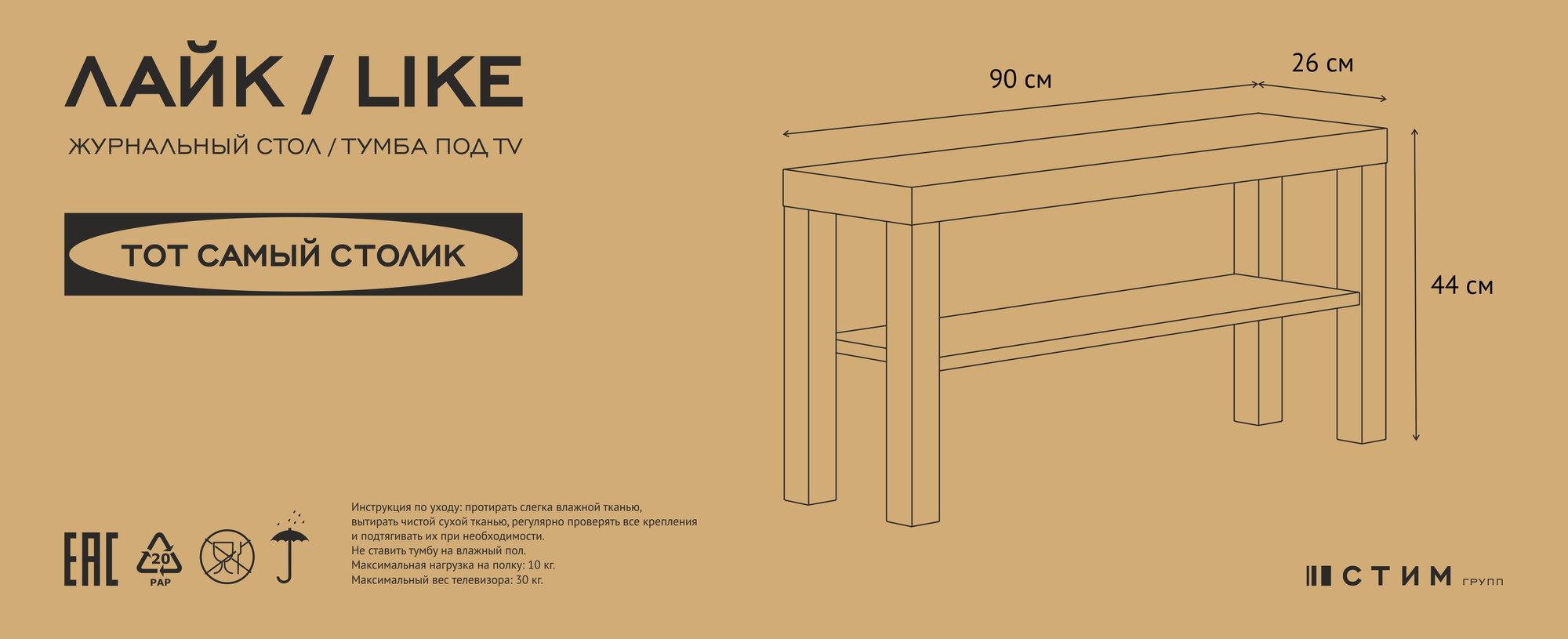 Лайк стол журнальный 90х55см, цвет Дуб светлый