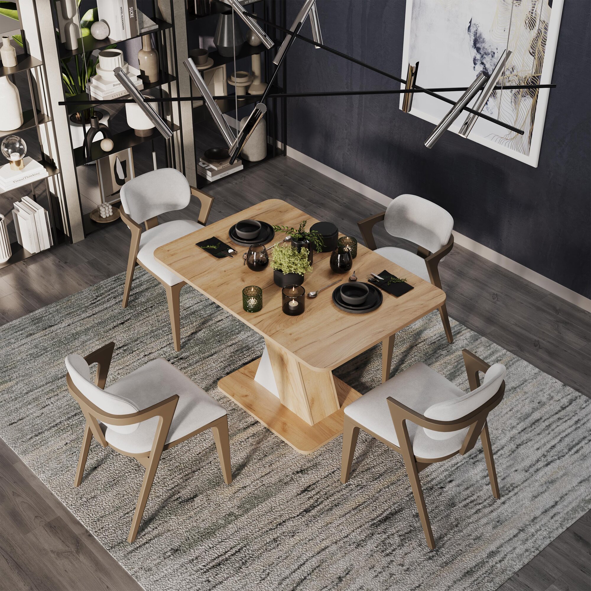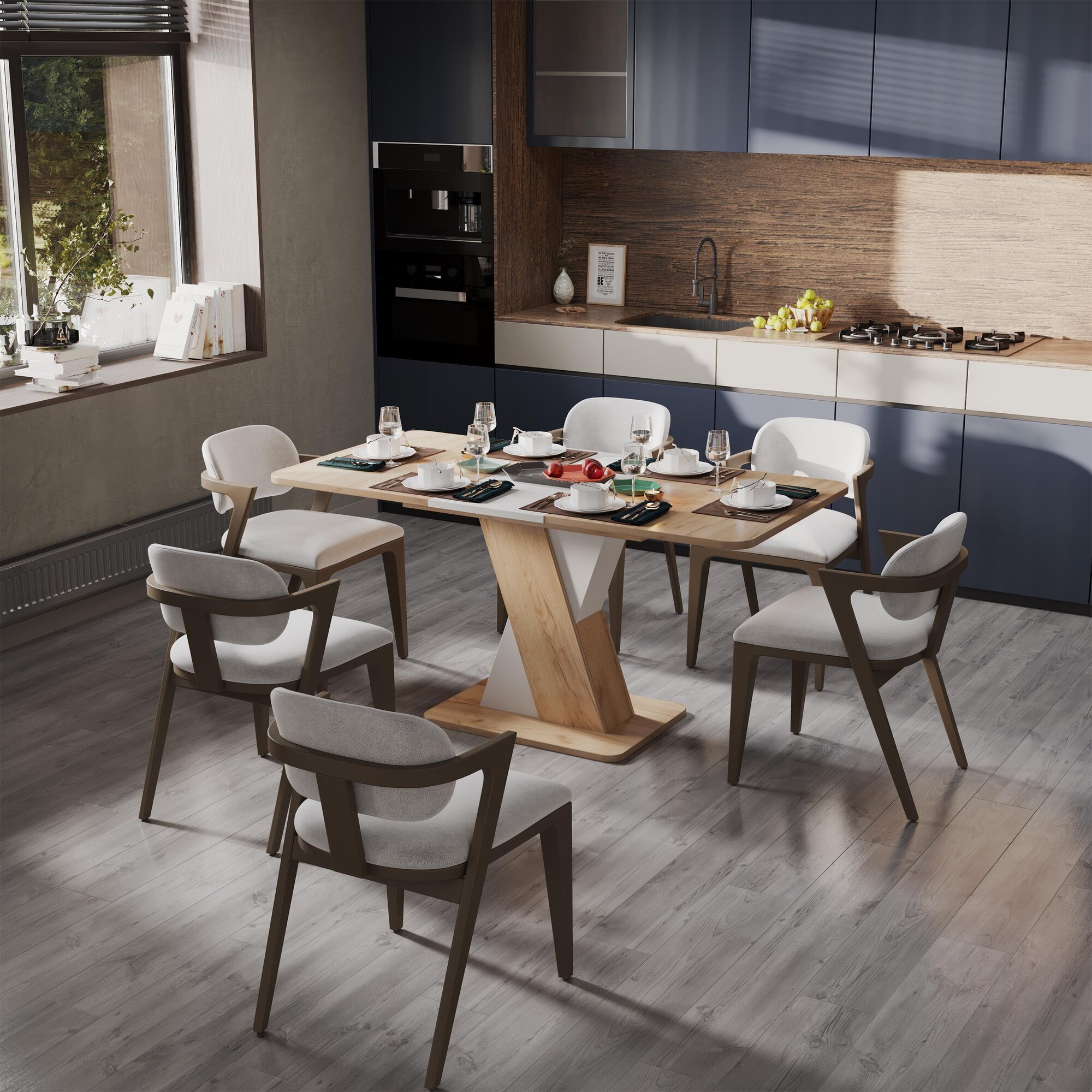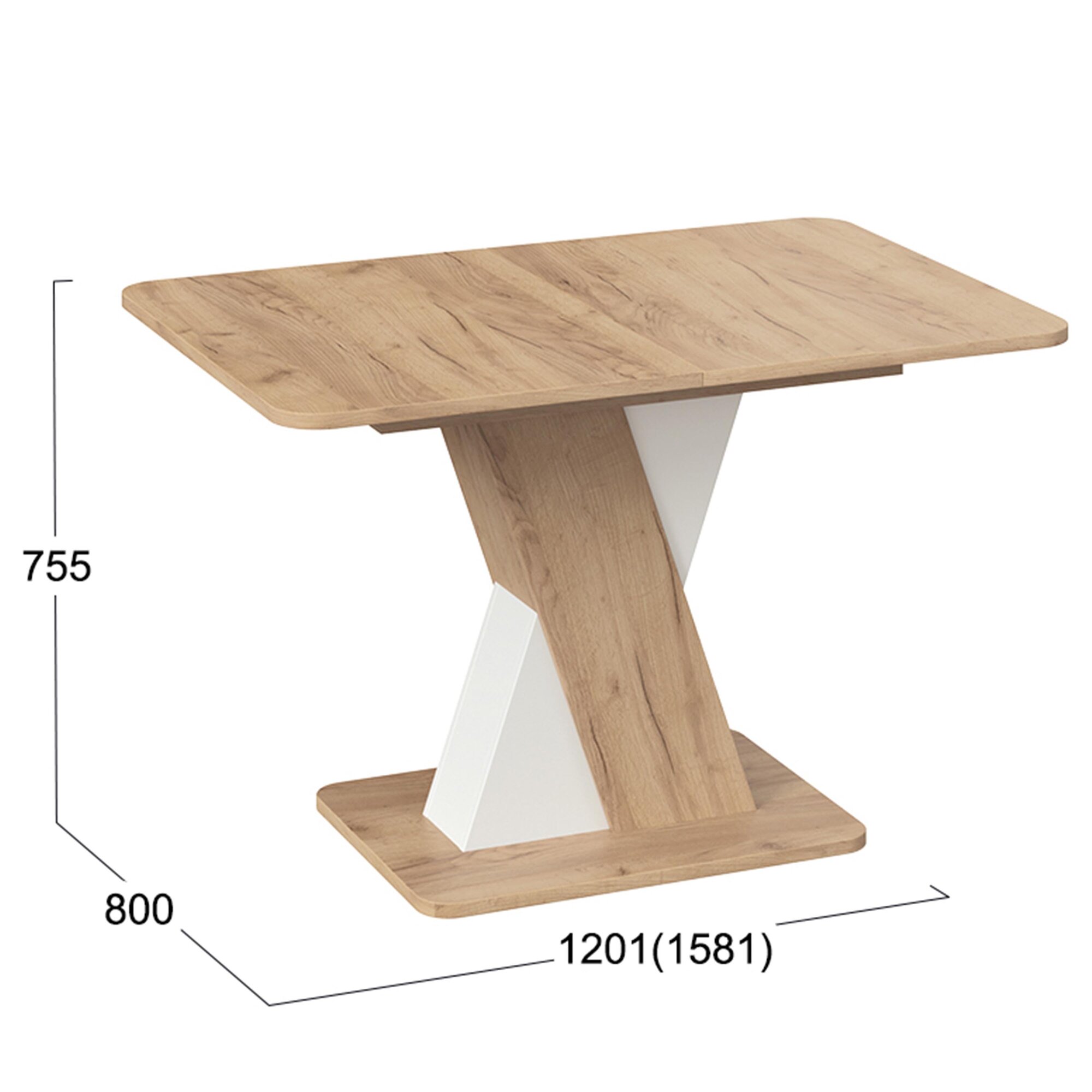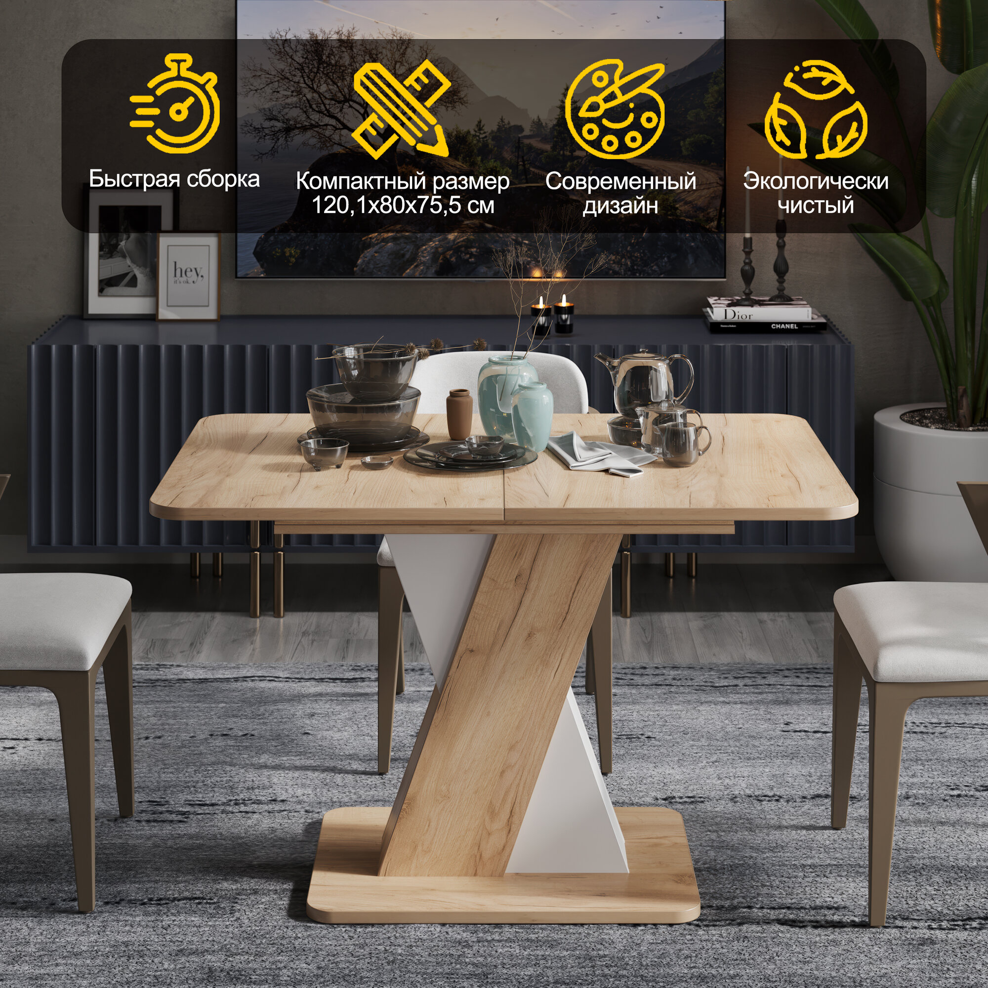 Стол обеденный раздвижной, кухонный стол белый бежевый дуб (ВхДхГ) 75х120х80 см, Люксембург интересное: