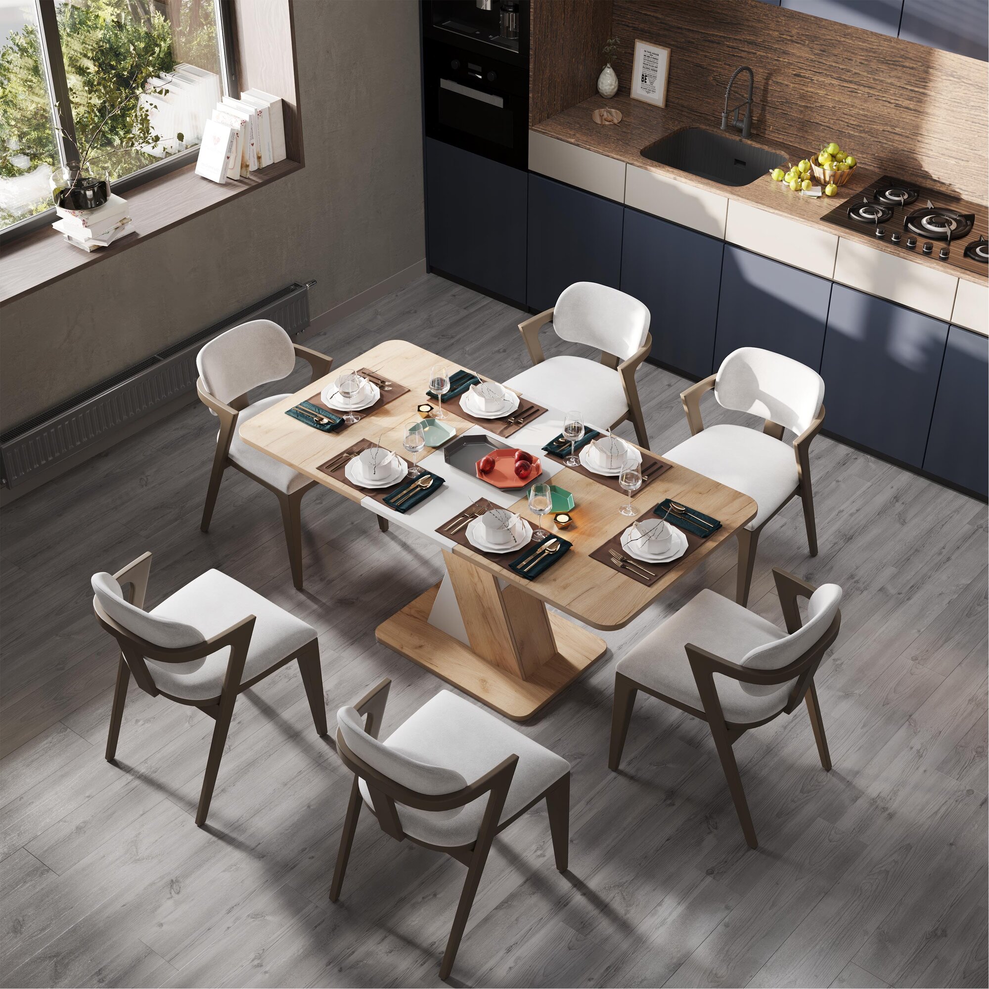 Купить Стол обеденный раздвижной, кухонный стол белый бежевый дуб (ВхДхГ) 75х120х80 см, Люксембург