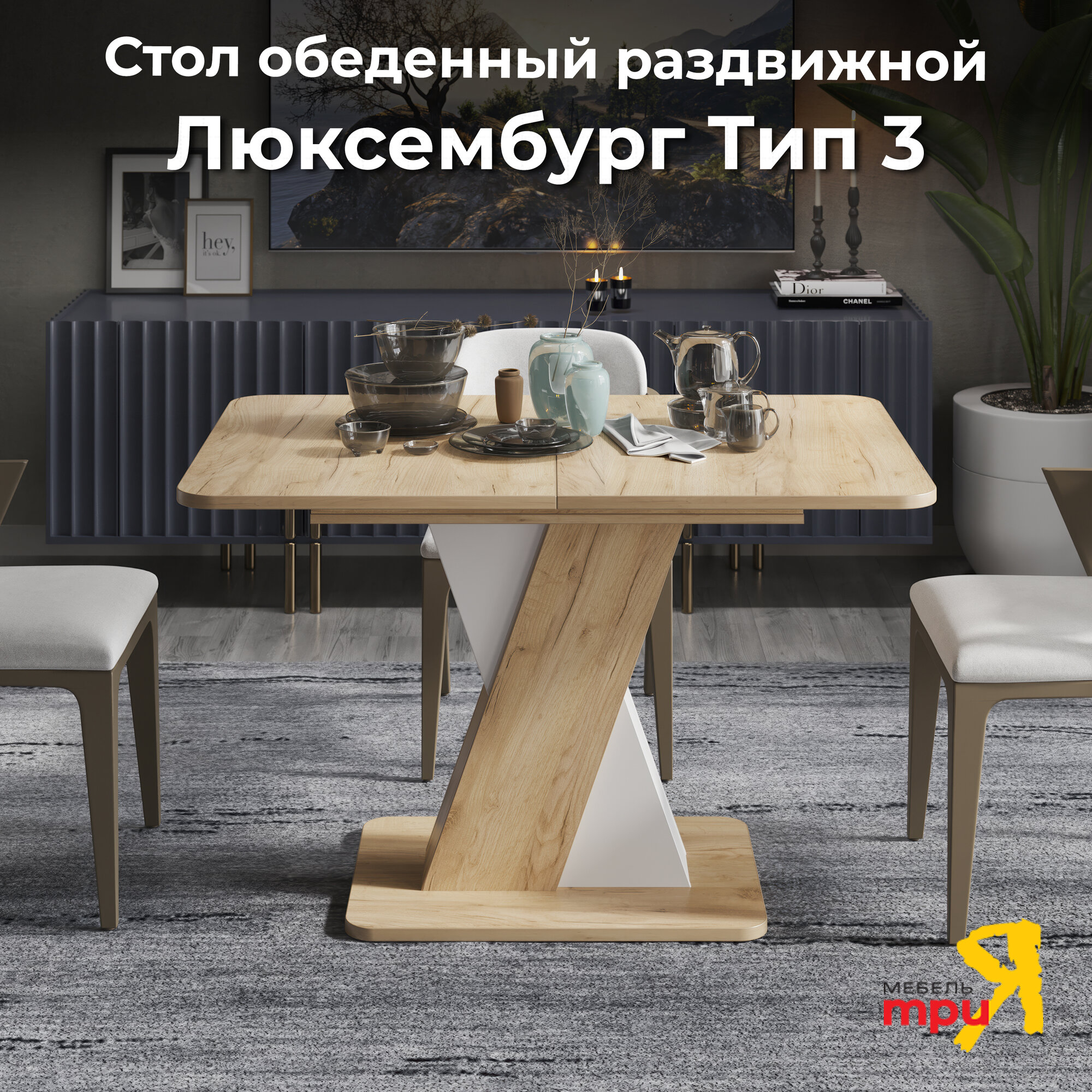 Стол обеденный раздвижной "Люксембург Тип 3" (Дуб крафт золотой/белый)
