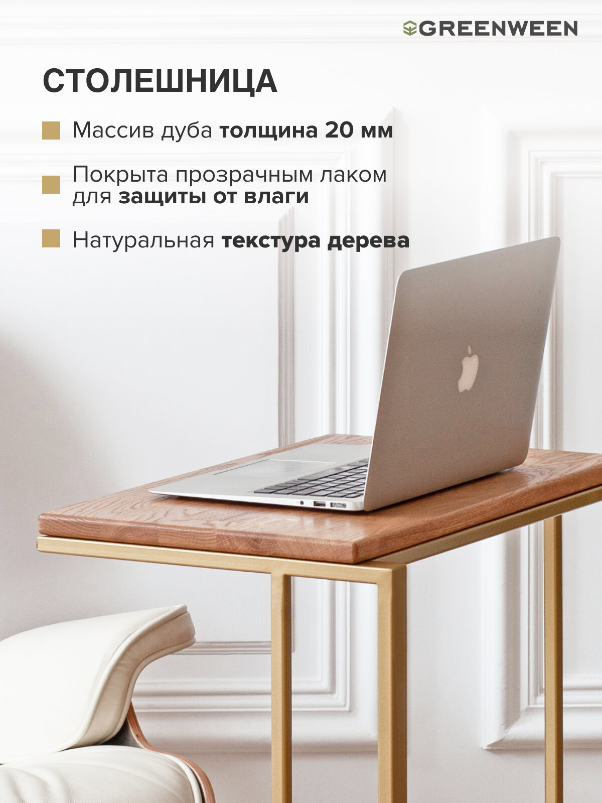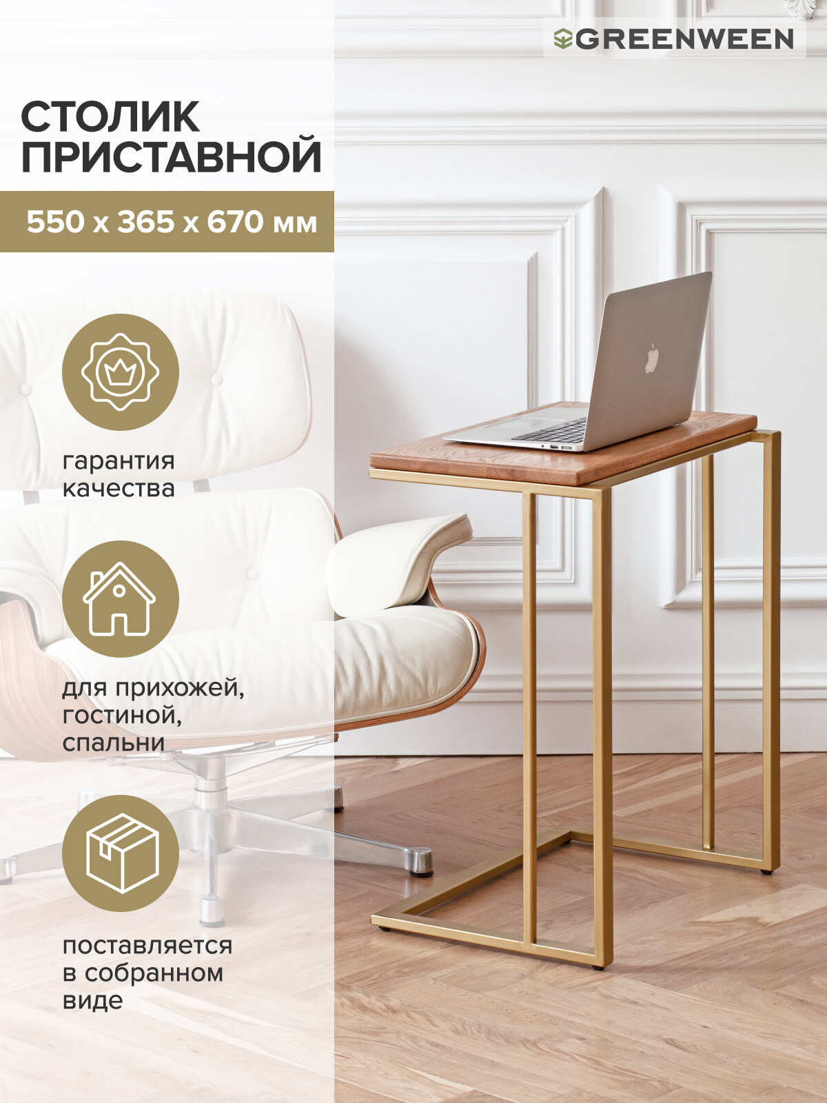 Столик кофейный Greenween приставной золотой, 550х365x670 интересное: