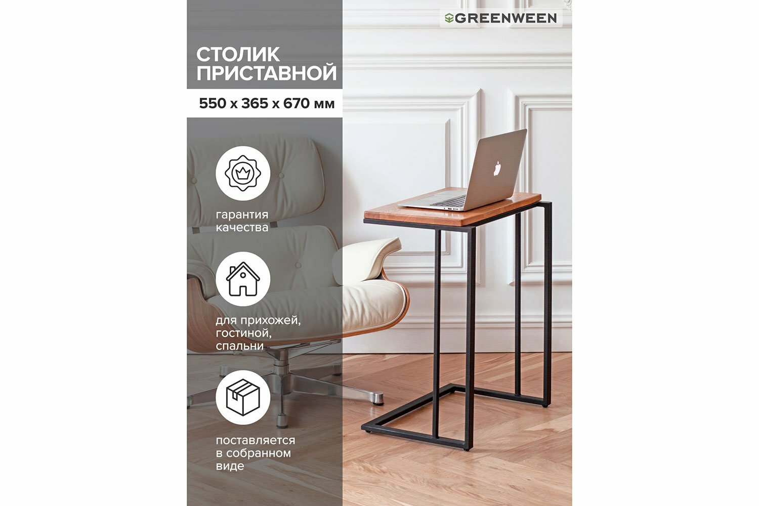 Столик кофейный Greenween приставной, черный интересное: