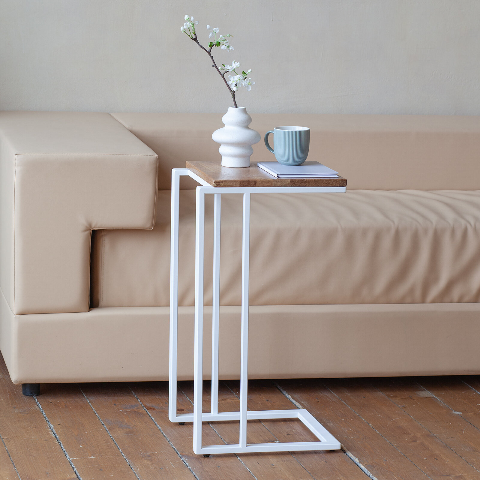 Столик кофейный приставной белый, натуральный дуб, 550х365x670
