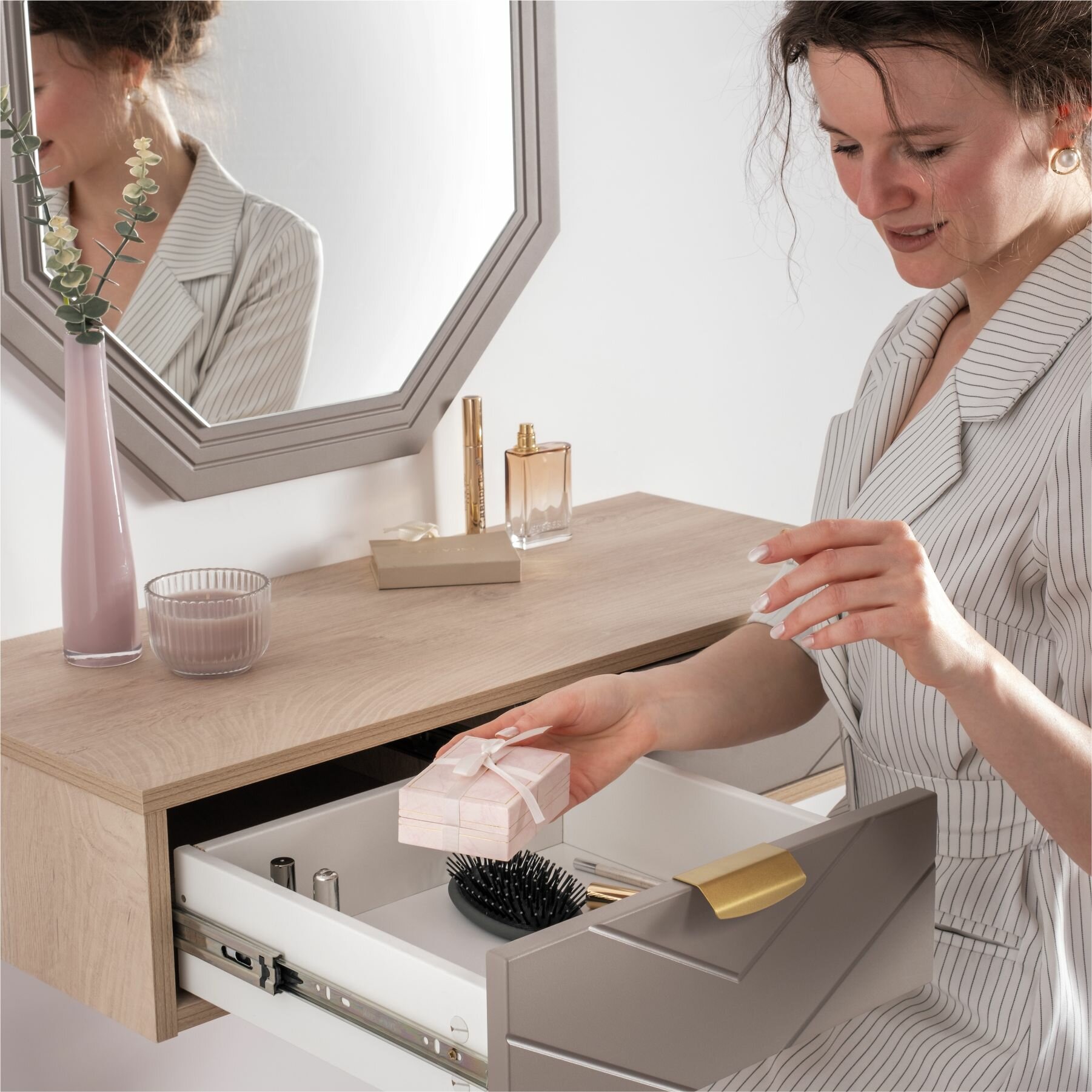 Консольный столик с ящиками Венеция 16.155.02, Дуб Эндгрейн элегантный, Веллюто Капучино интересное: