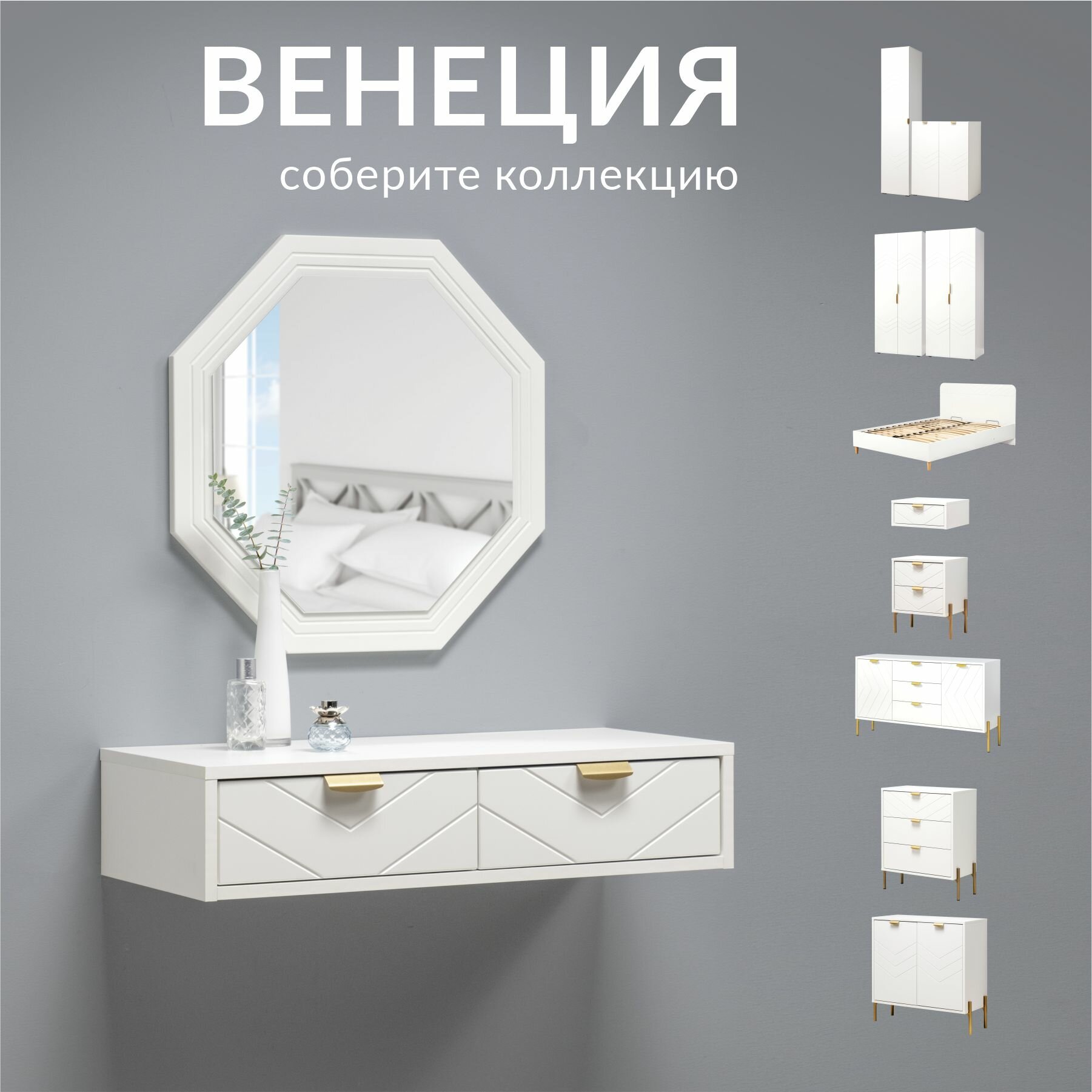 Консольный столик с ящиками Венеция 16.155.02, Белый PE шагрень, белая шагрень интересное: