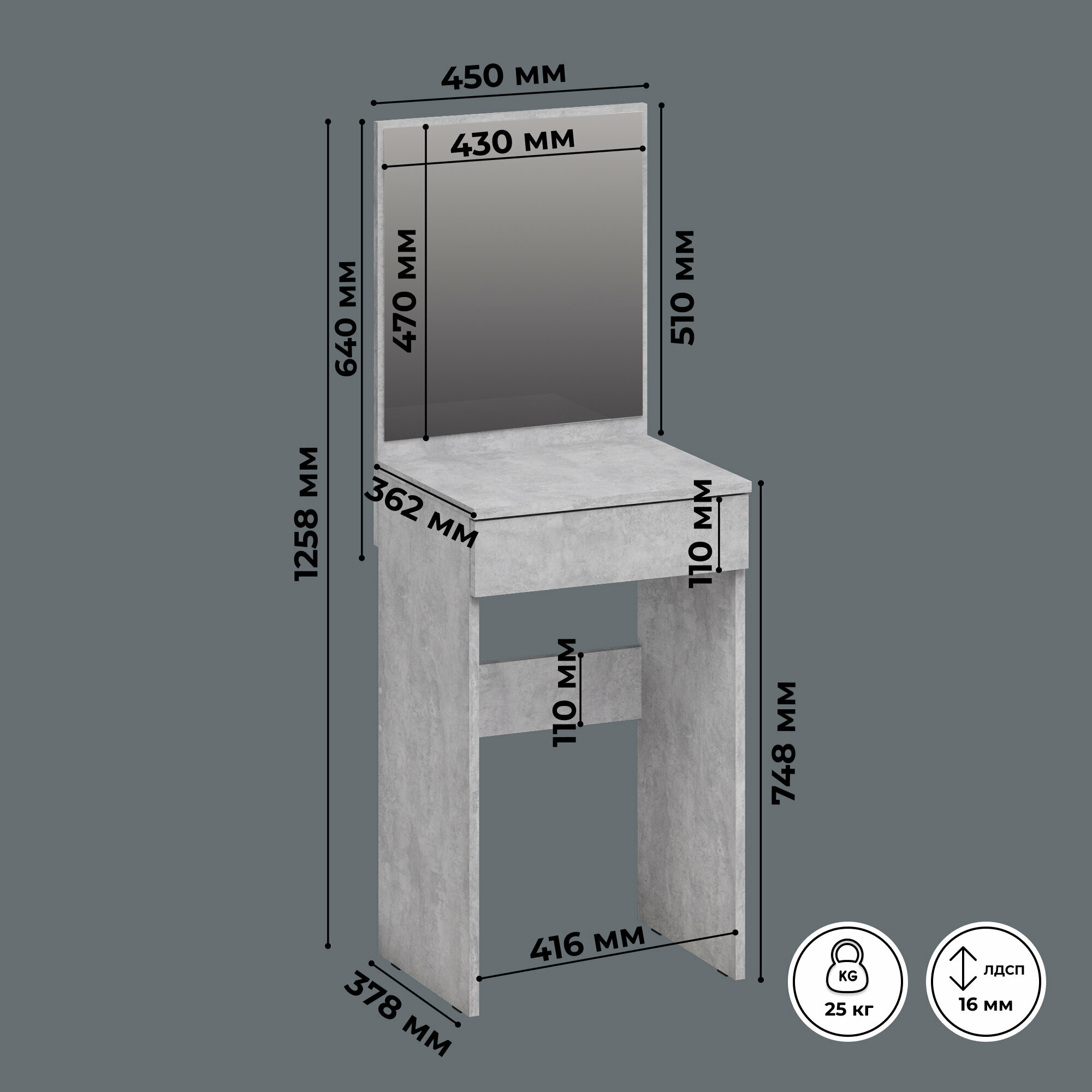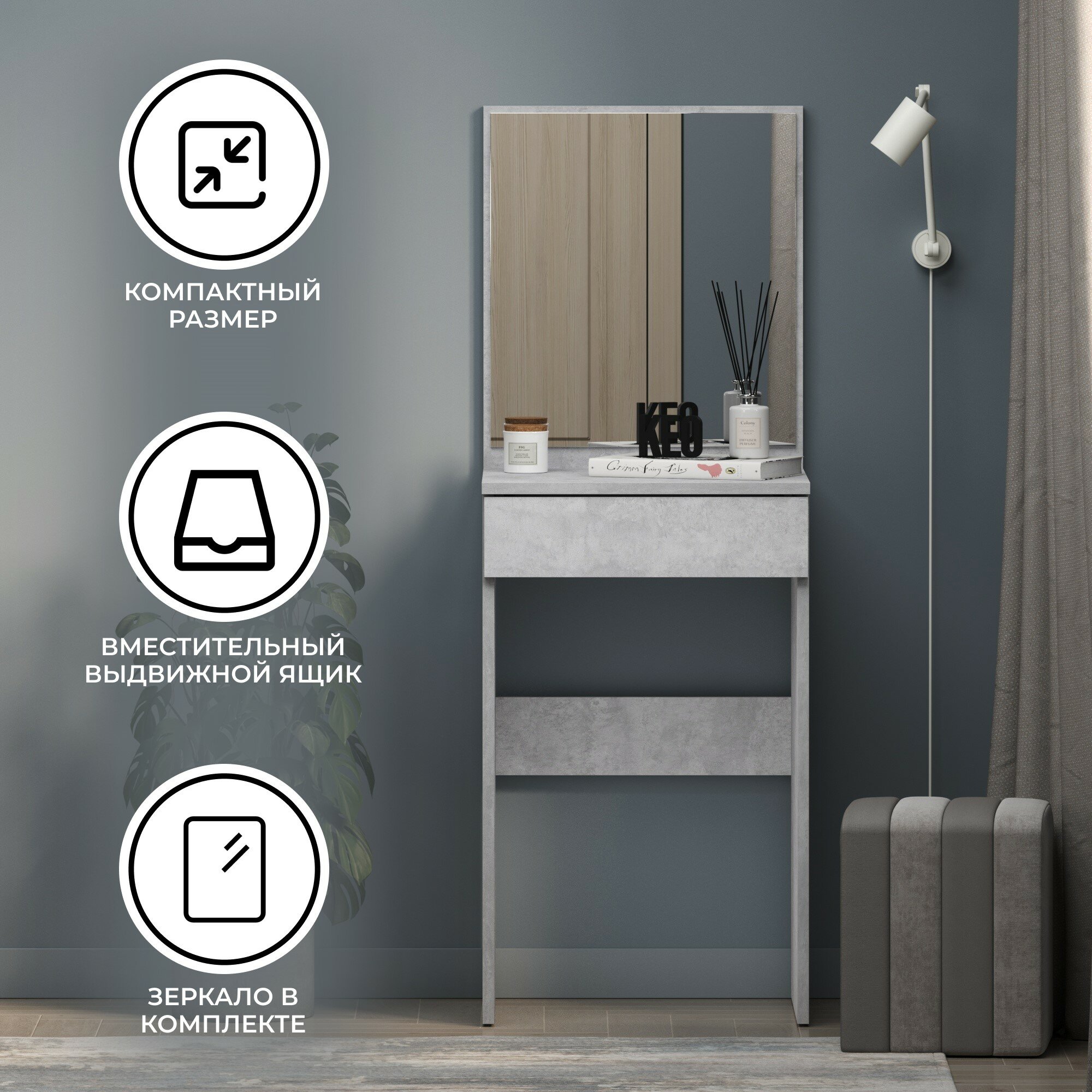 Туалетный столик с зеркалом и выдвижным ящиком Кео СТЛ-100 бетон интересное: