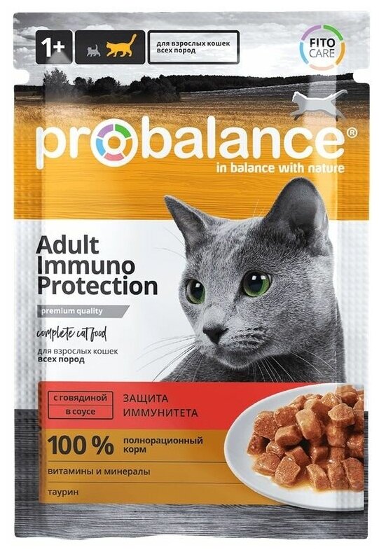 Купить PROBALANCE CAT IMMUNO PROTECTION для взрослых кошек с говядиной в соусе (85 гр)