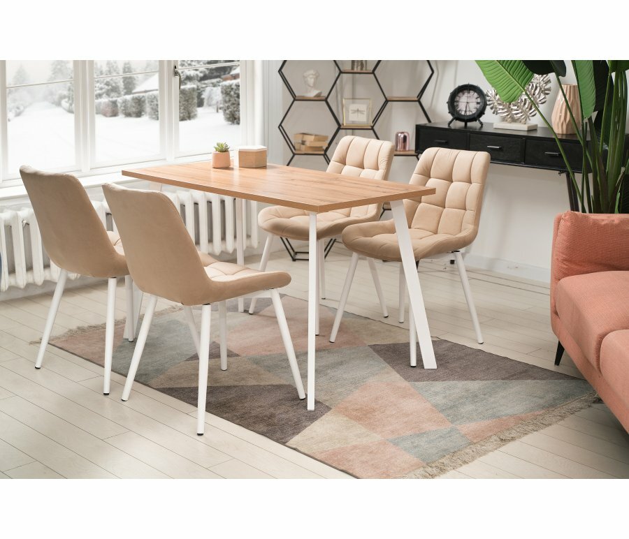 Стол обеденный Woodville Тринити Лофт 140 25 мм дуб делано светлый / белый матовый