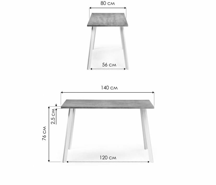 Купить Стол Лайфмебель Тринити Лофт 140 25 мм бетон / белый матовый
