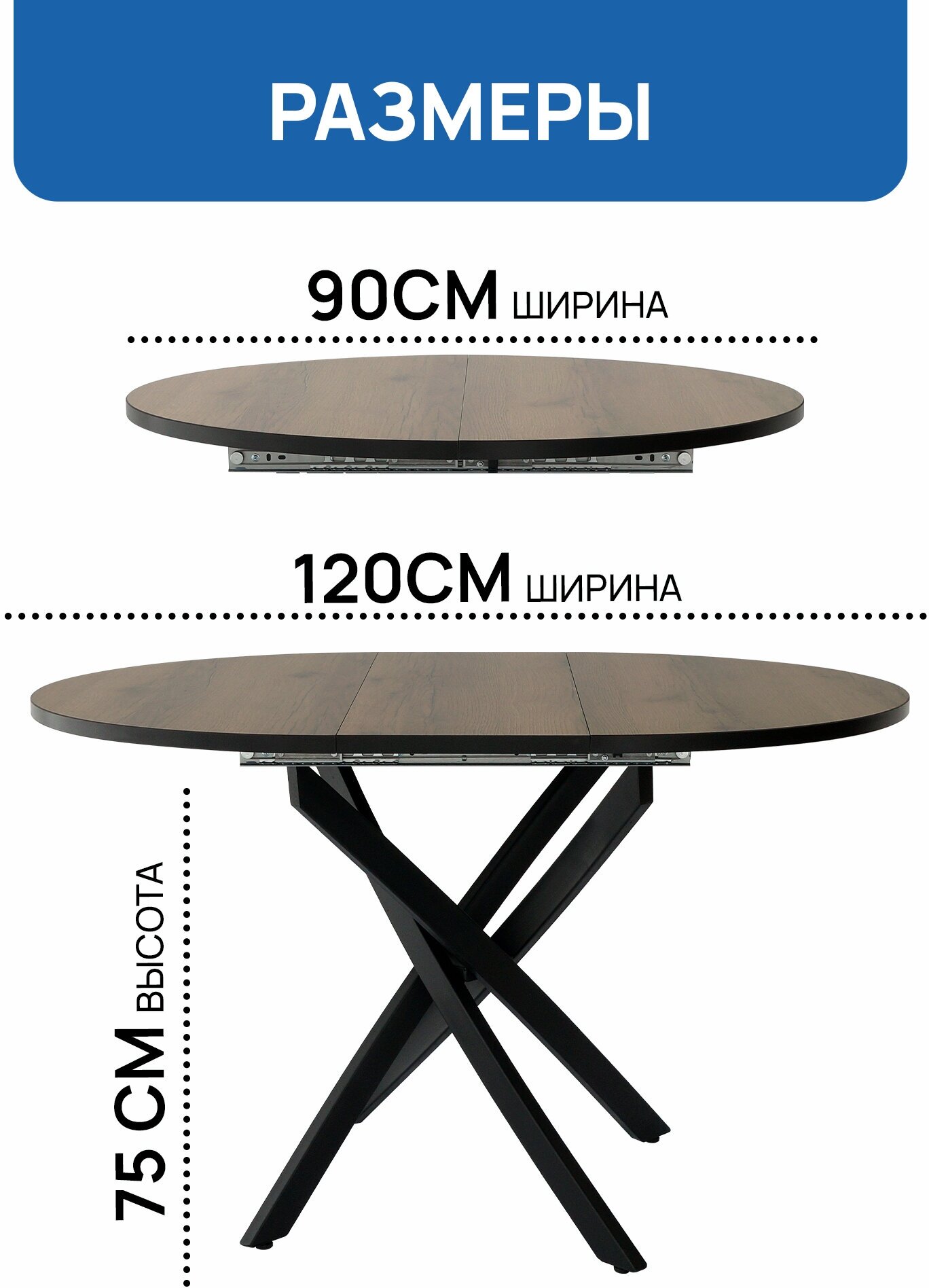Стол кухонный круглый раздвижной Дуб вотан черный 90-120*90*75