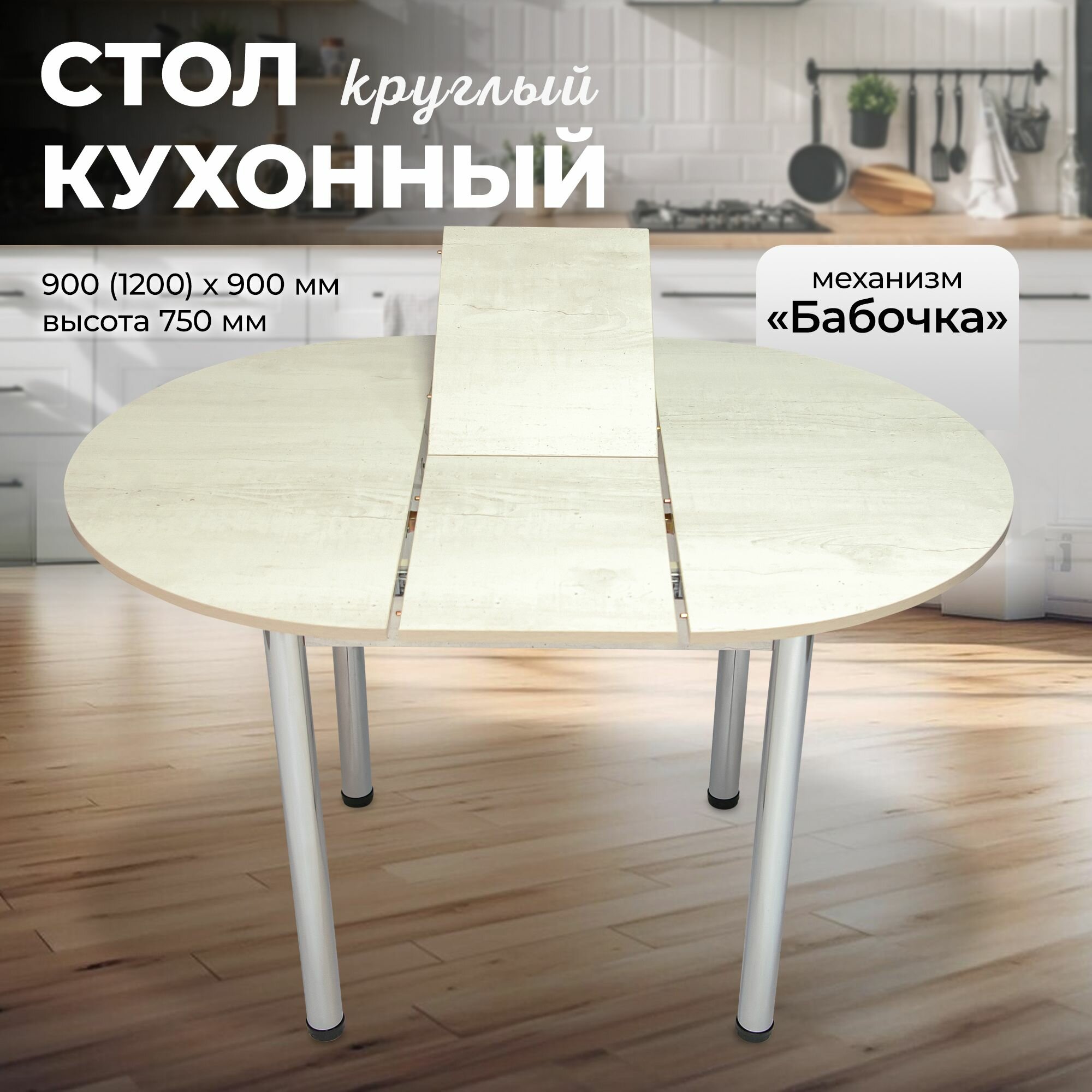 Стол обеденный Ники, кухонный, раскладной, 900/1200х900х750, Бетон белый