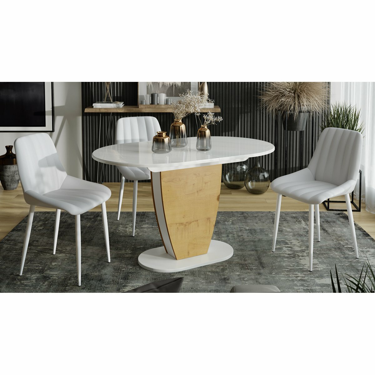 Стол обеденный Монреаль Тип-1 (Белый глянец/моод темный)