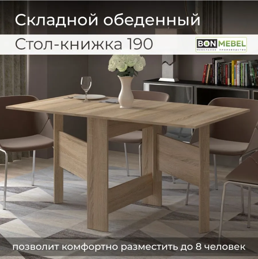 Раскладной стол-книжка Дуб Сонома Трюфель 190 BONMEBEL, 150 х 80 х 75 см интересное: