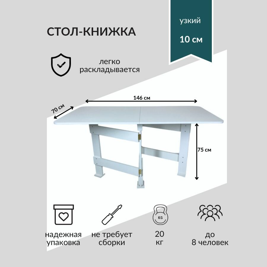 Стол-книжка раскладной узкий. Белый раскладной стол 1460х700мм интересное: