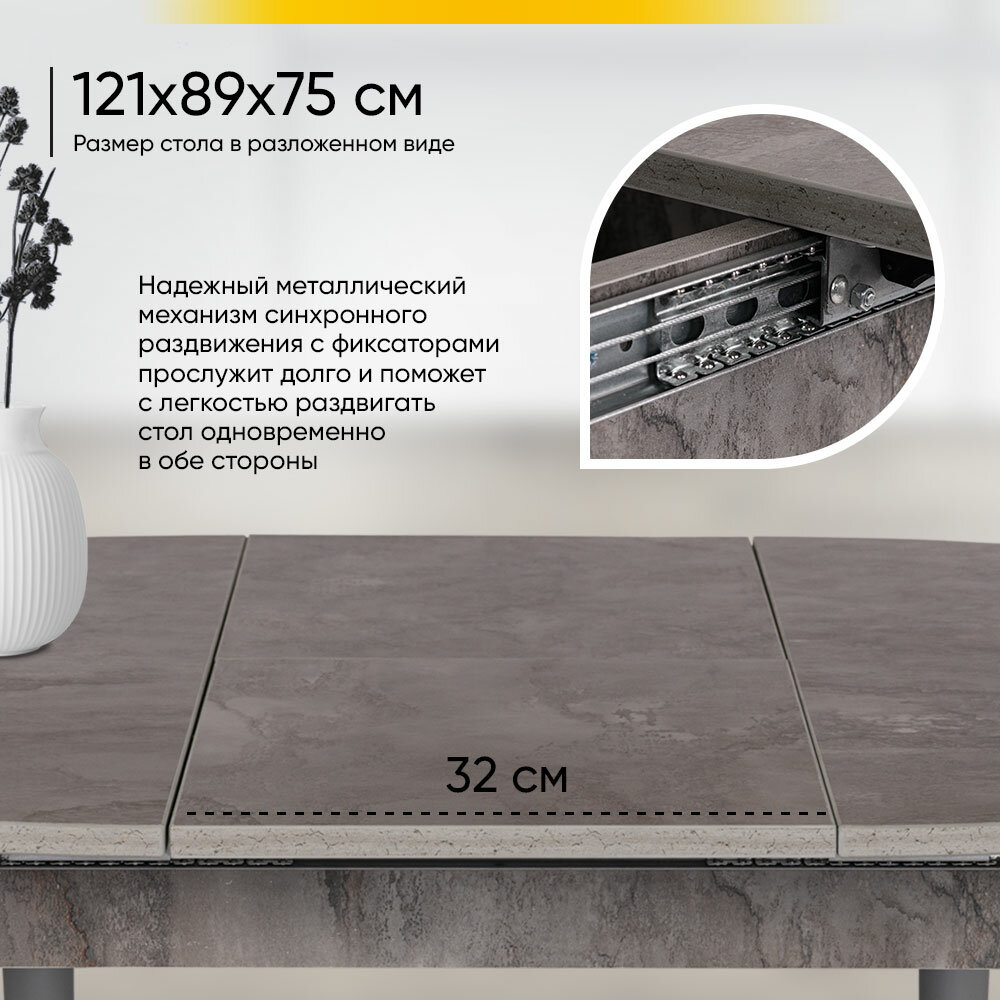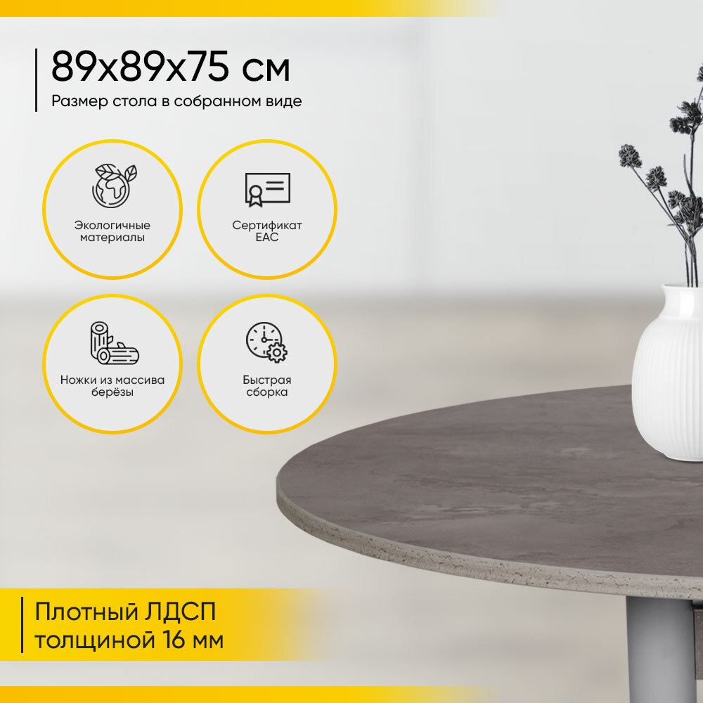 Кухонный стол круглый раздвижной, 89-121х89х75