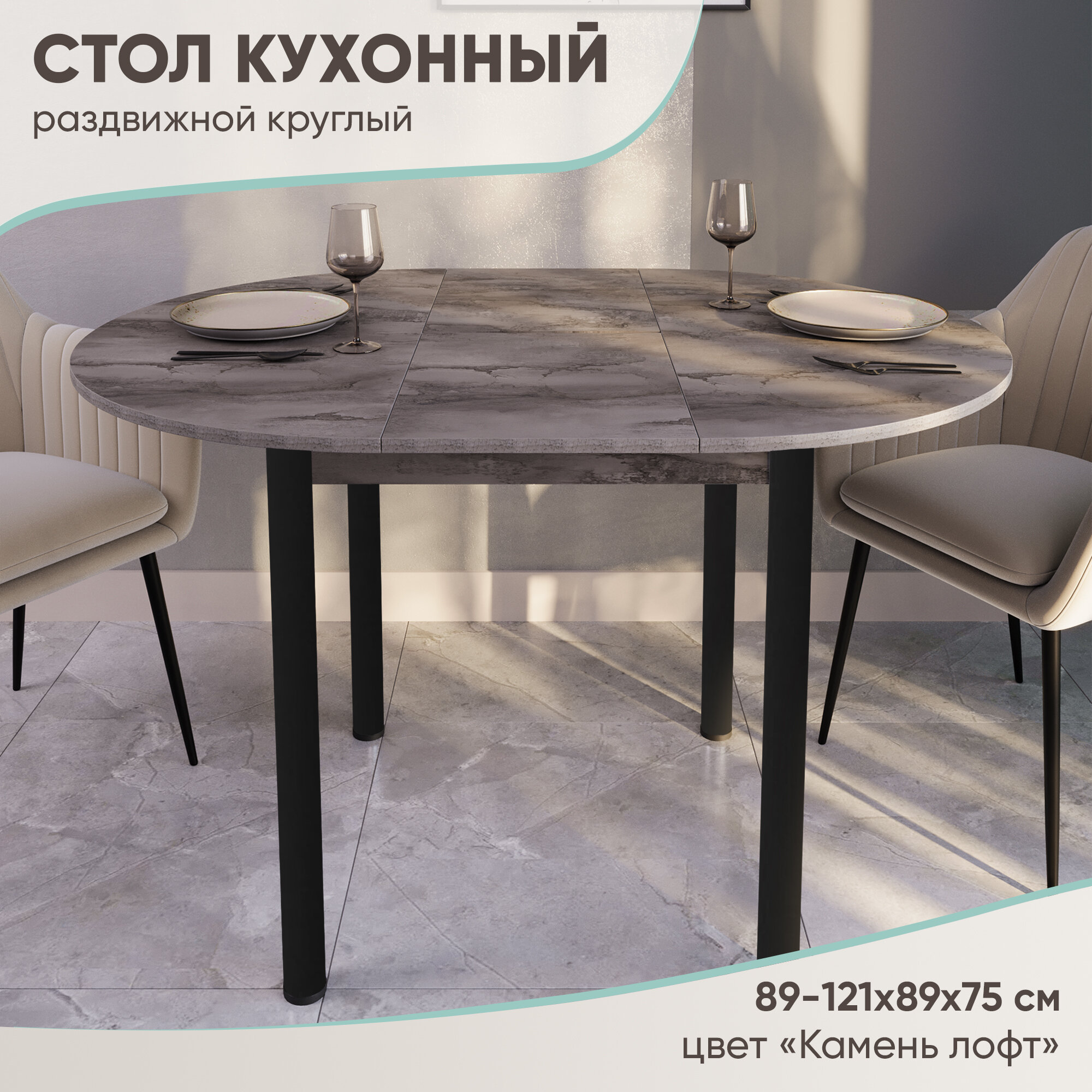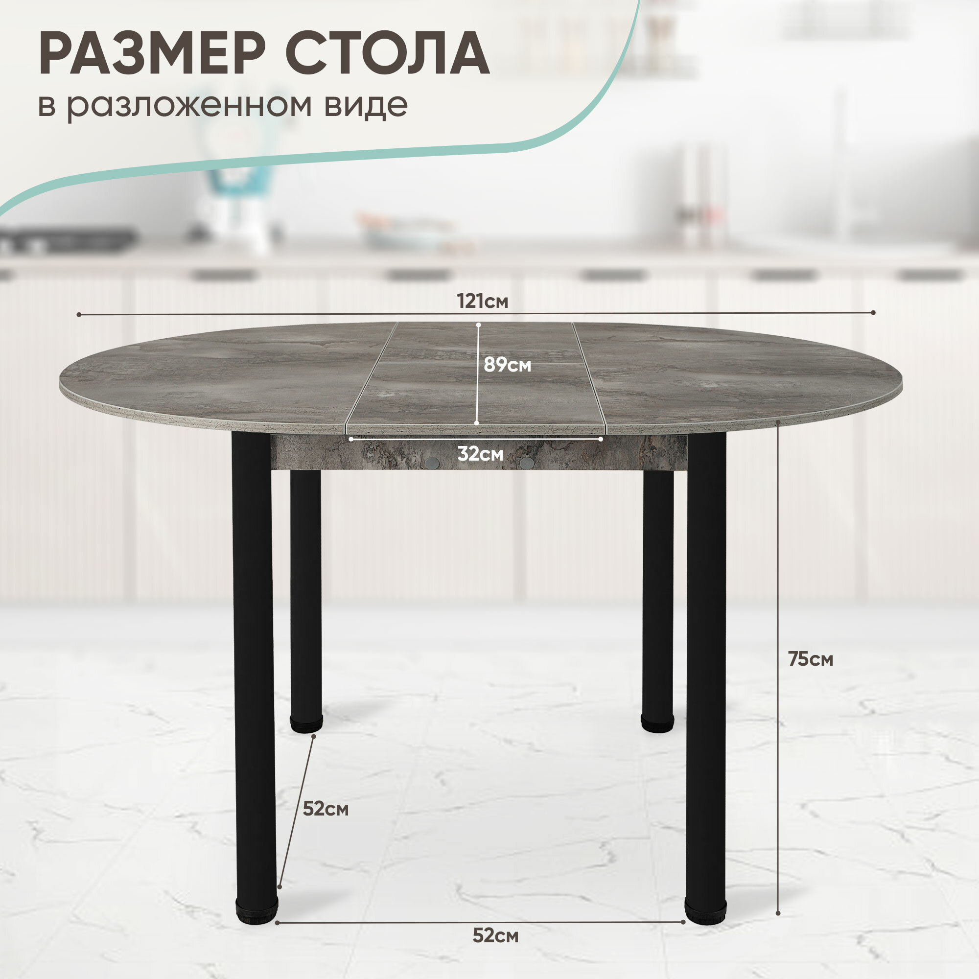 Кухонный стол круглый раздвижной, 89-121х89х75