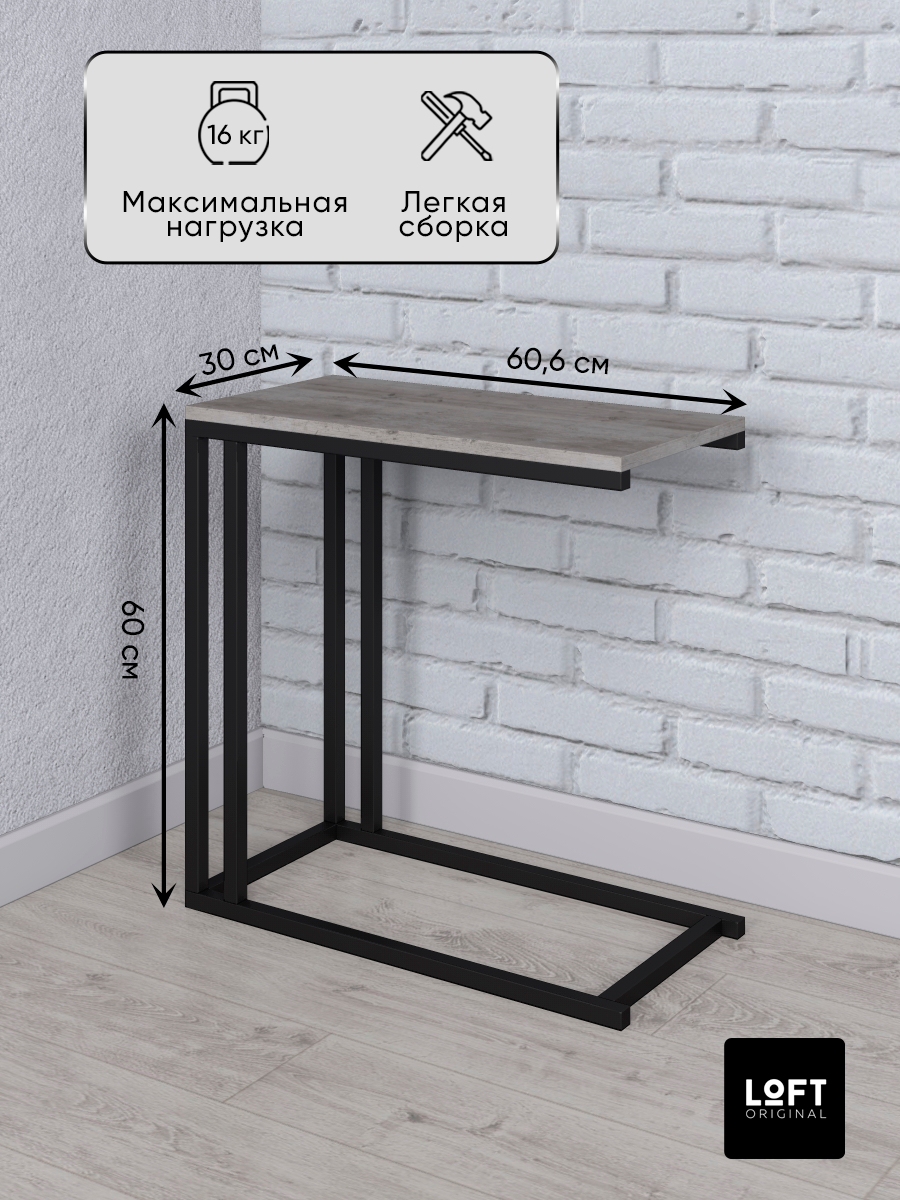Столик журнальный прикроватный приставной Лофт 60х30 см серый интересное: