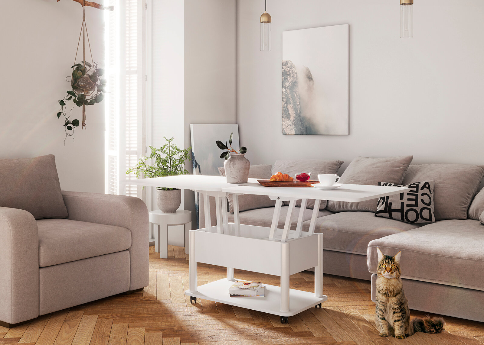 Журнальный стол-трансформер Дебют-3 (белый, ножки белые) интересное: