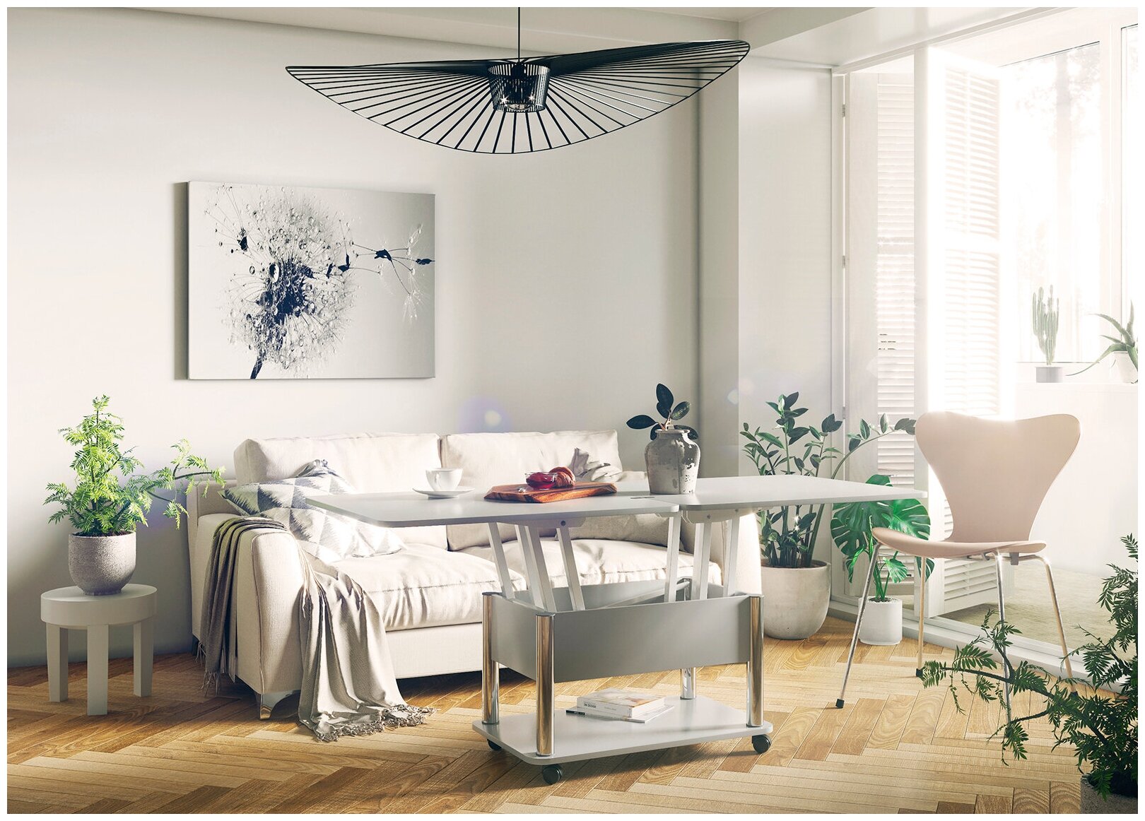 Журнальный стол-трансформер Форвард-мебель Дебют 3/белый, ножки белые