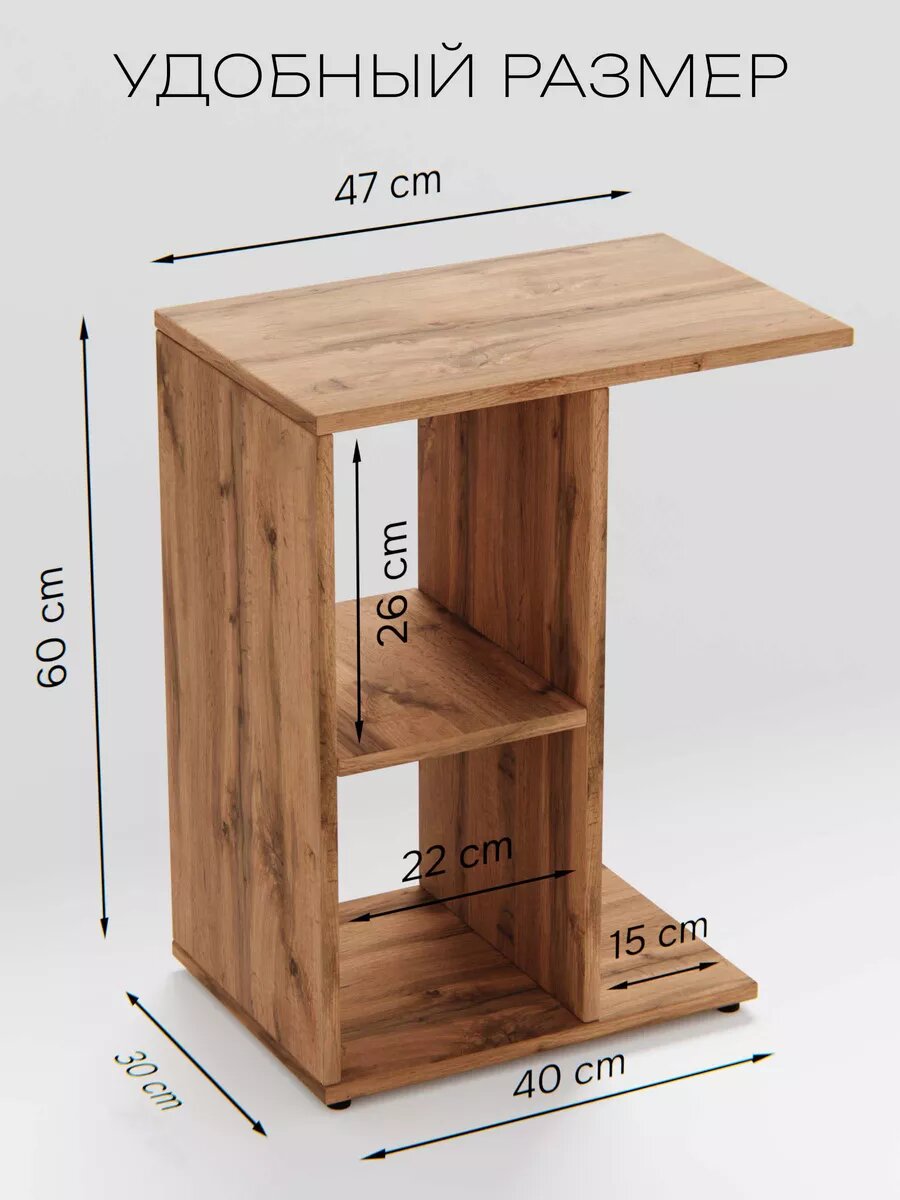 Стол журнальный "Устел" с полкой, 30х47х60см дуб вотан придиванный столик