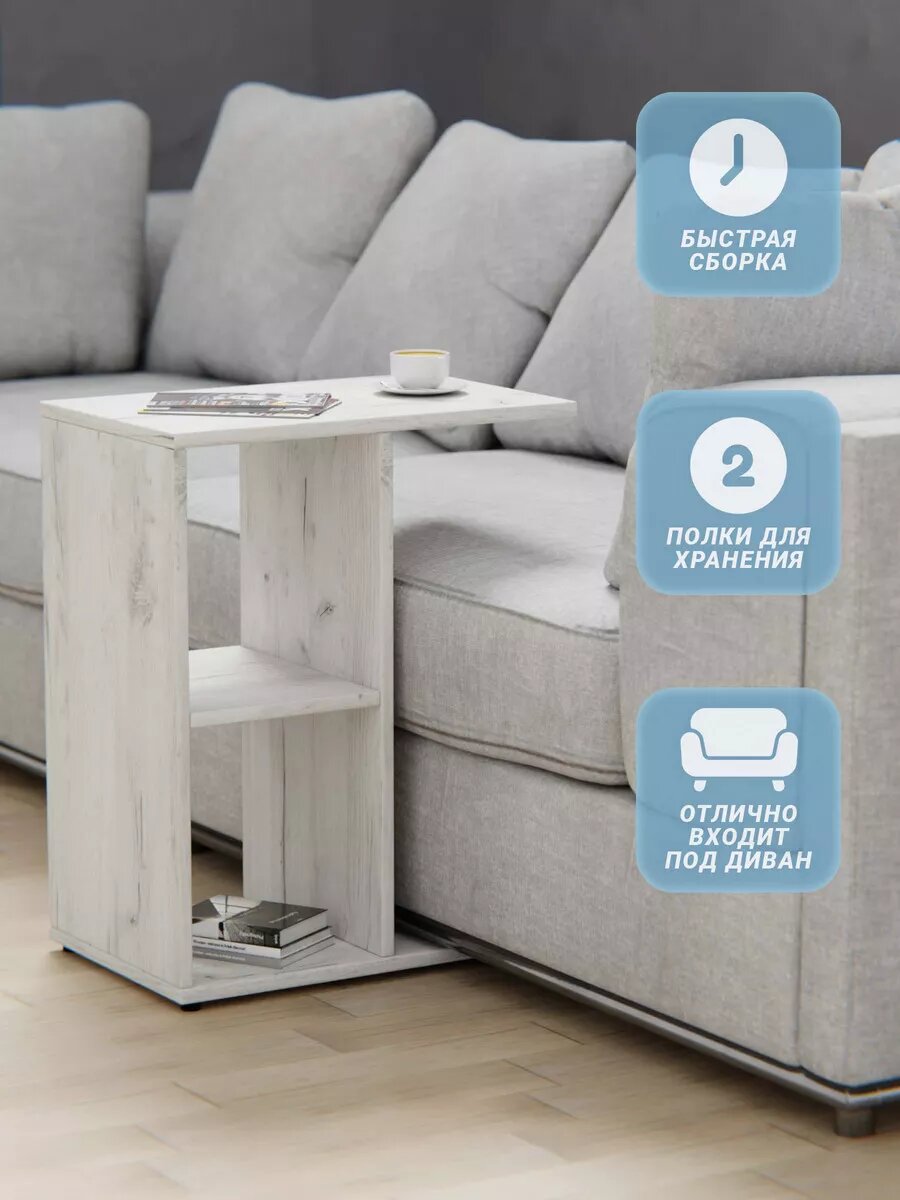 Стол журнальный Устел с полкой 30х47х60, цвет белое дерево Юта интересное: