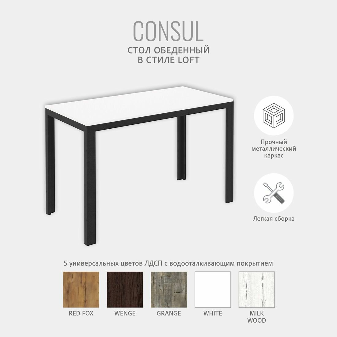 Стол кухонный CONSUL, белый, обеденный стол лофт, 120х60х75 см, гростат интересное: