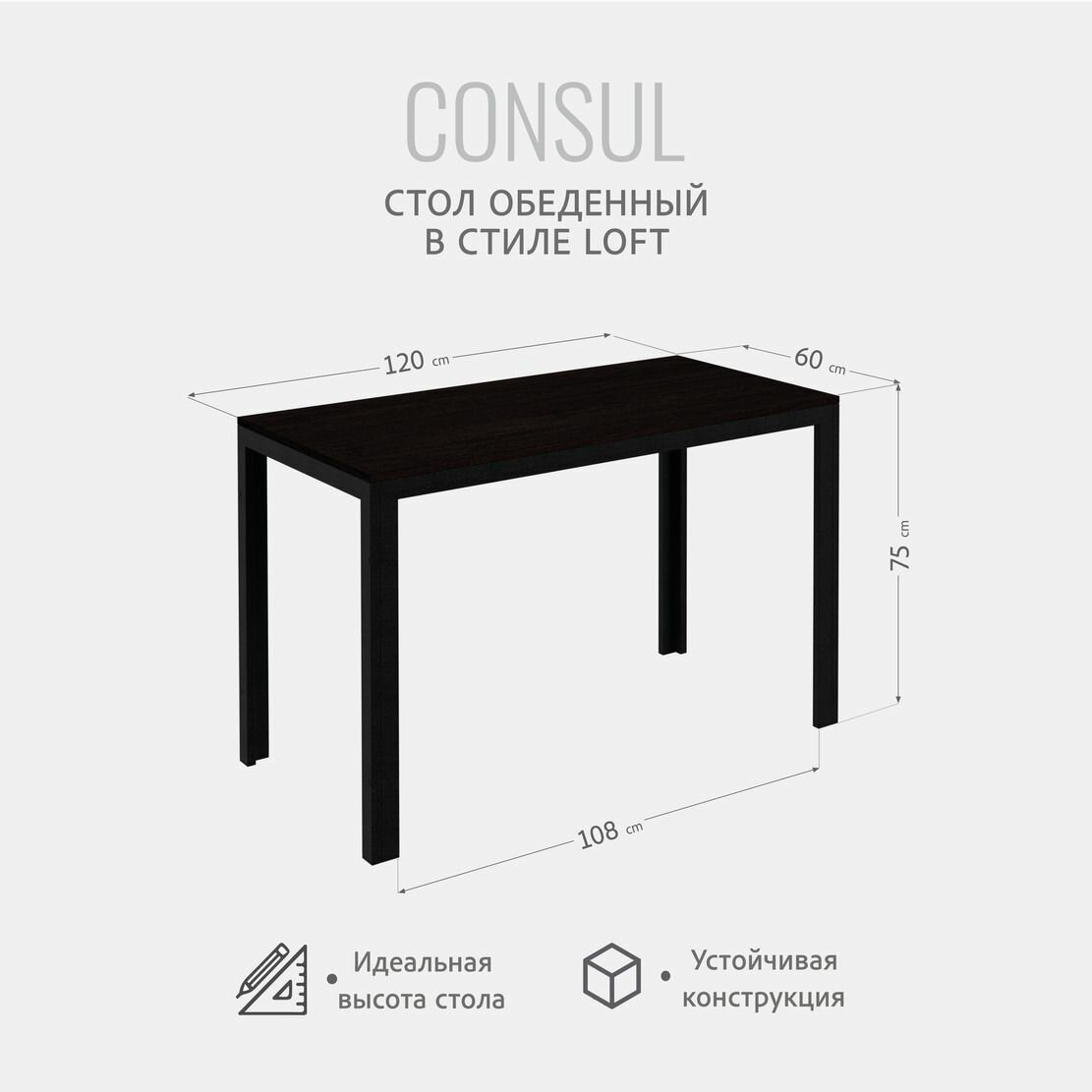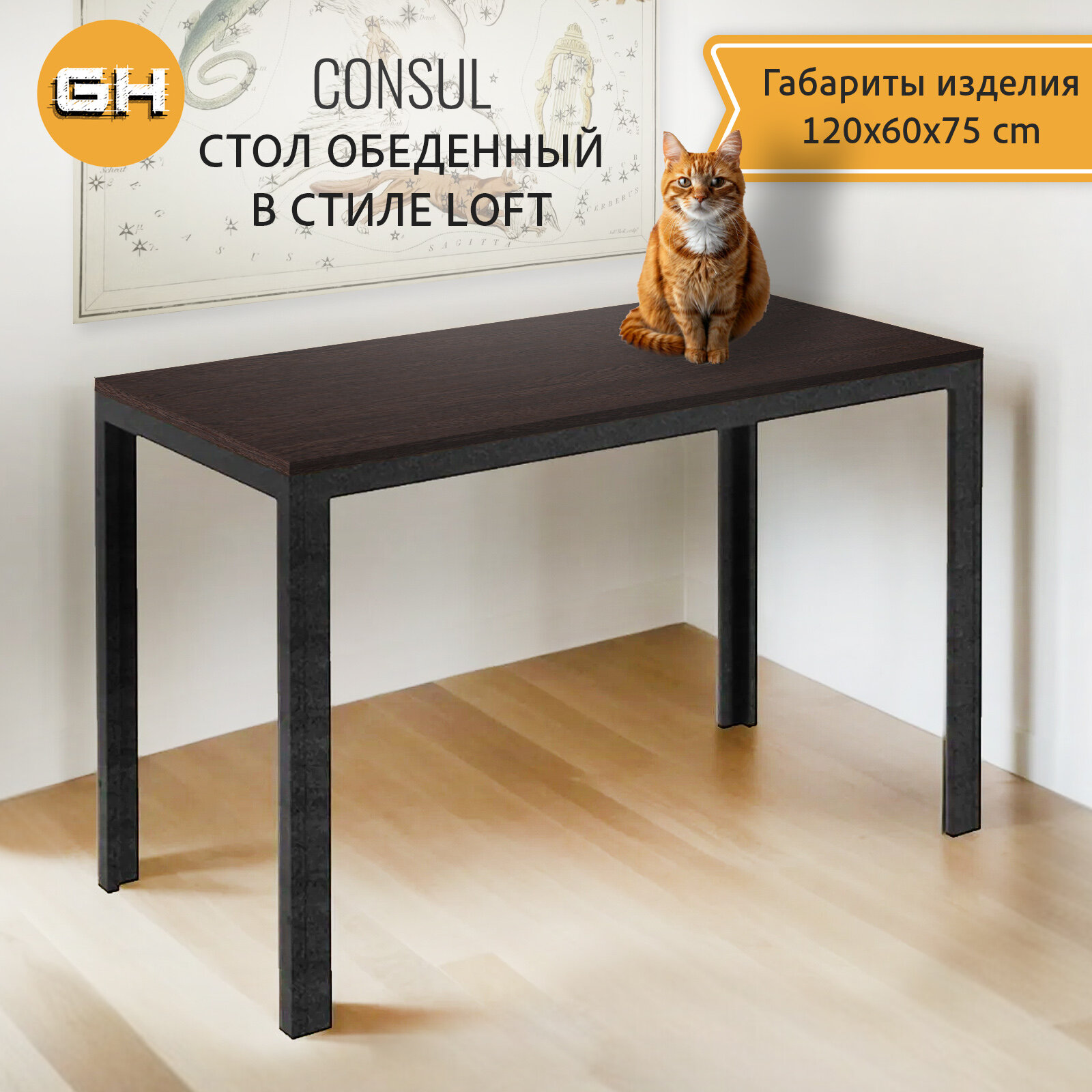 Стол кухонный CONSUL, темно-коричневый, обеденный стол лофт, 120х60х75 см, гростат интересное: