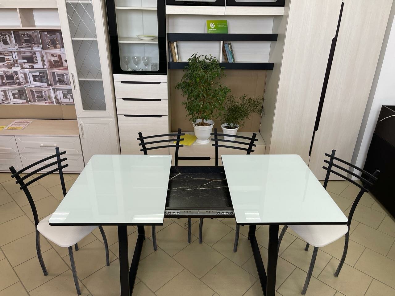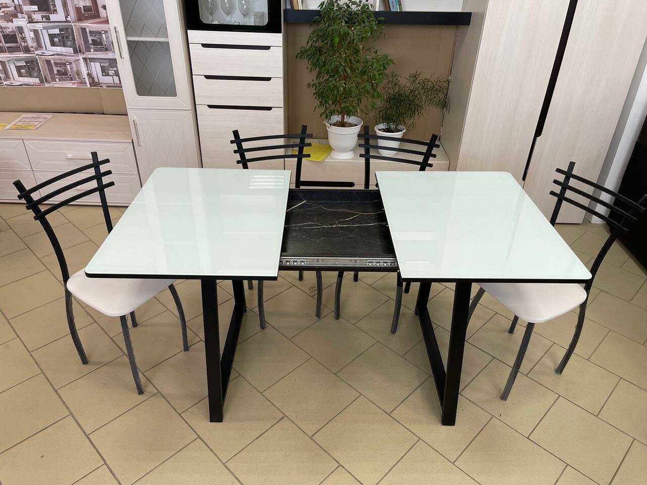Стол кухонный раздвижной Орфей 15 с белым стеклом лдсп Файерстоун 120/157*80 высота 78 см интересное: