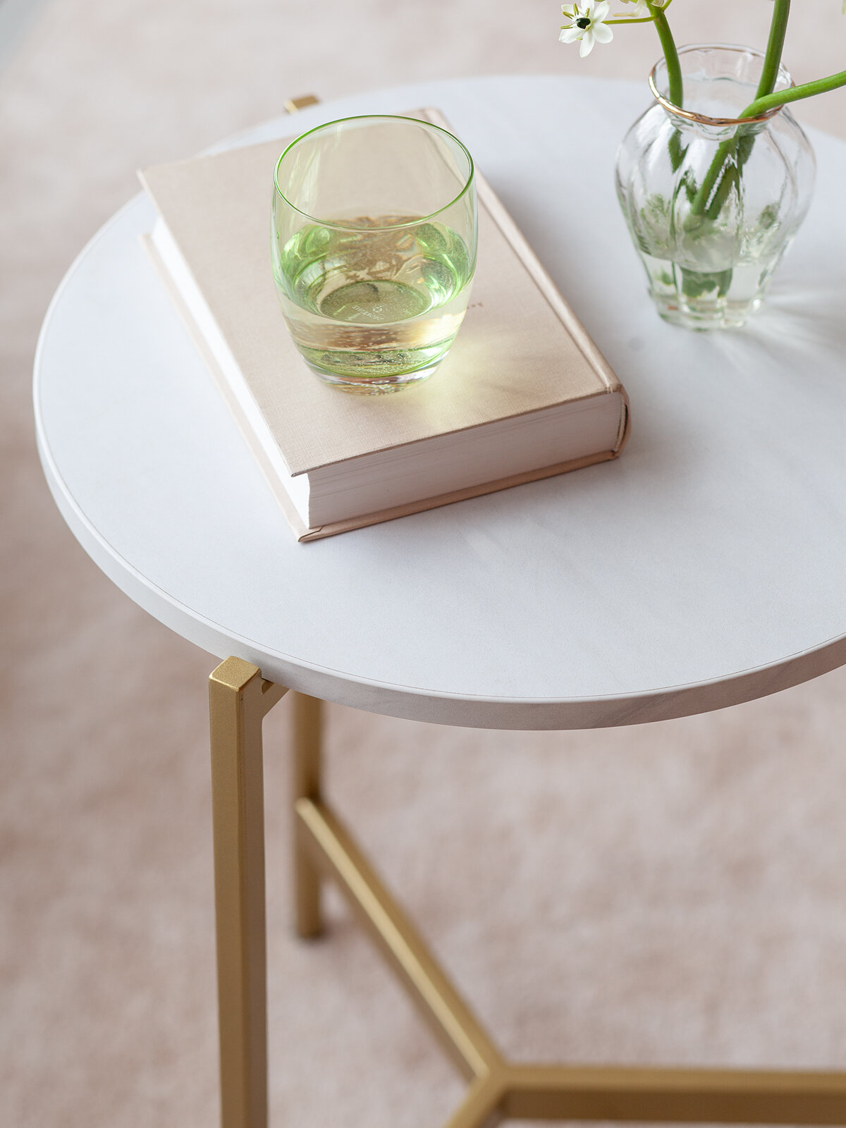 Столик кофейный, журнальный ODRI, круглый, металлический золотой каркас, 60x40 см