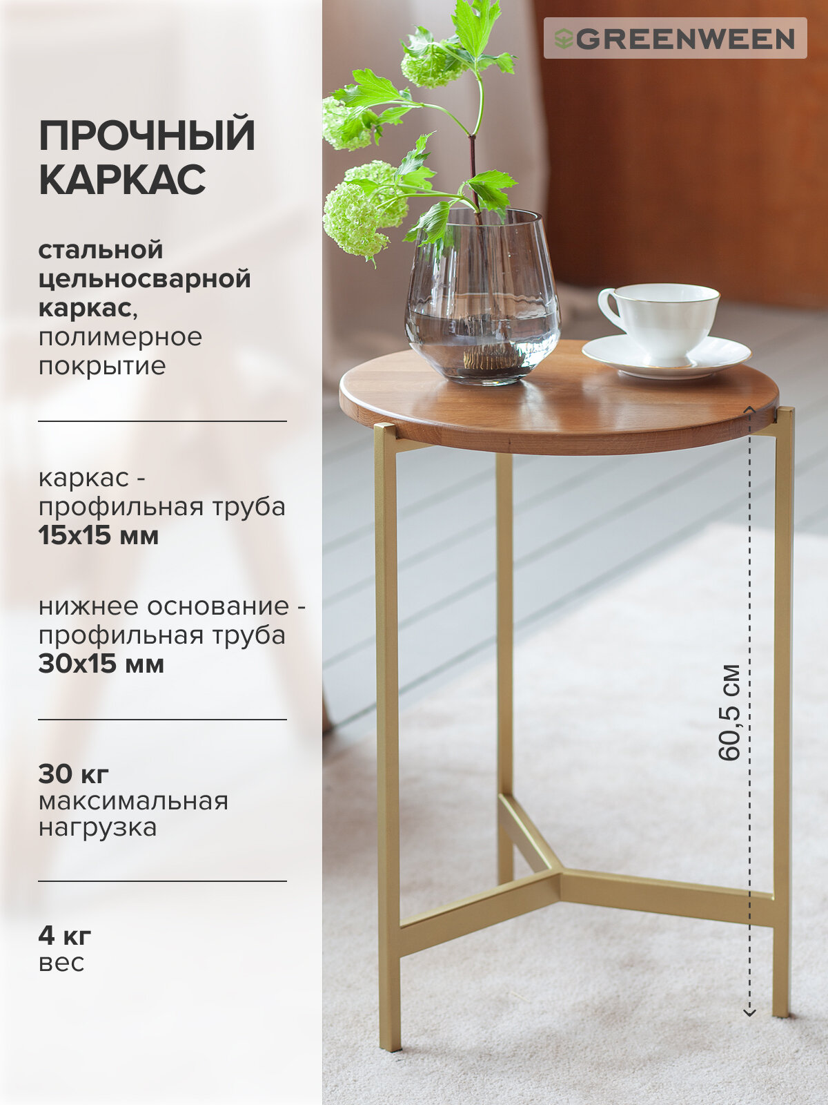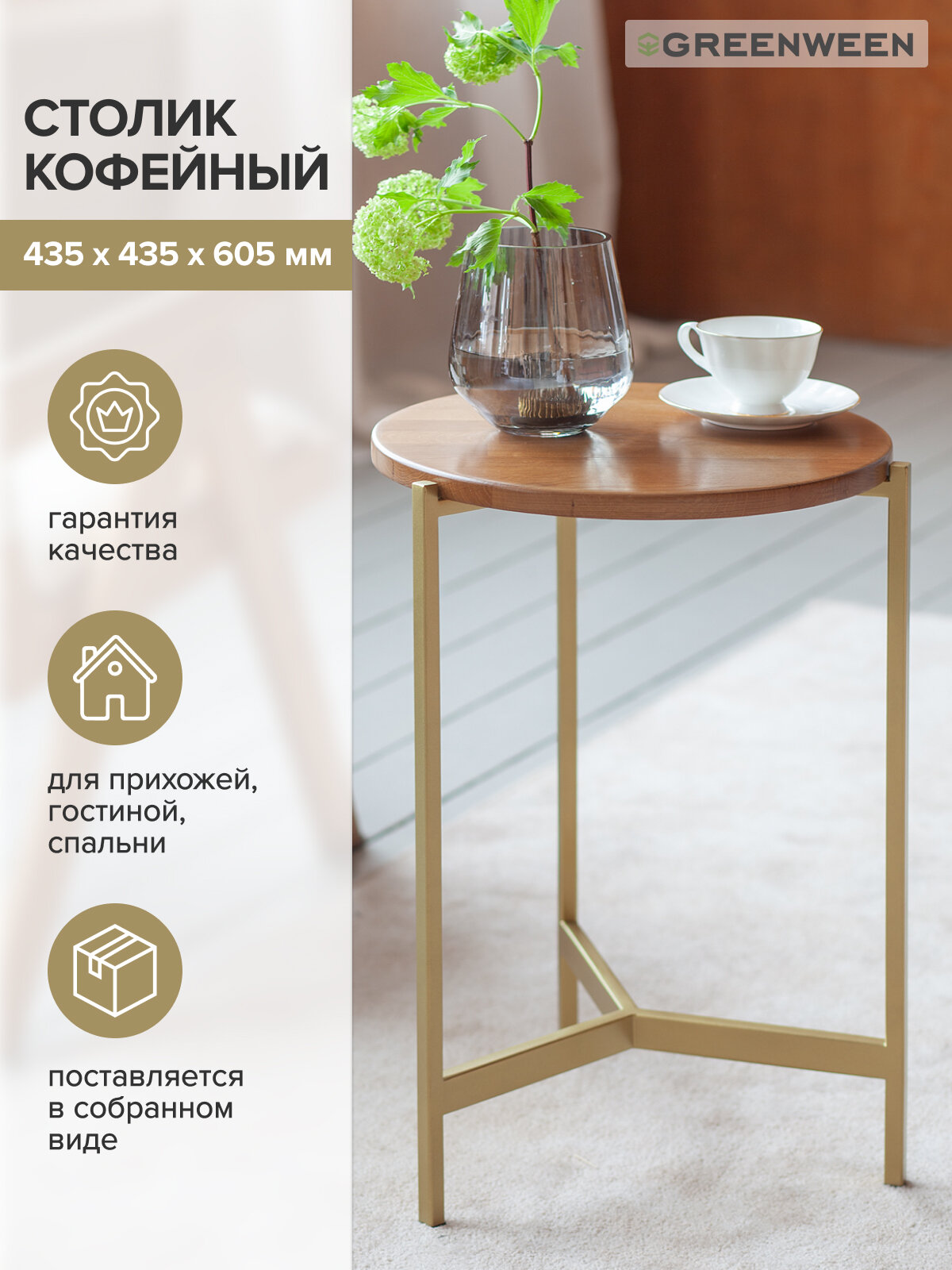 СохранитьСтолик кофейный Greenween ODRI, золотой/дуб интересное: