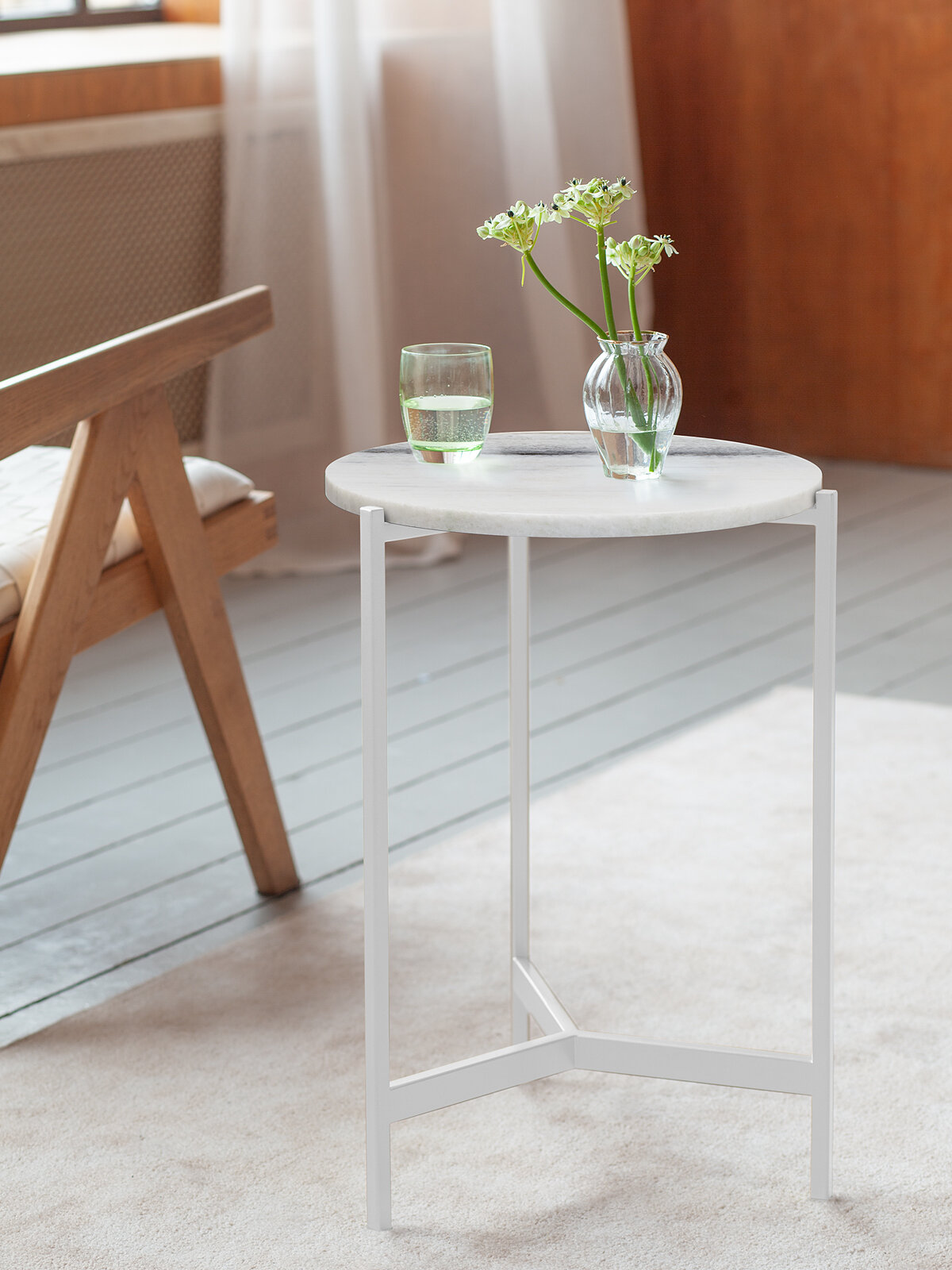 Купить Столик кофейный ODRI, белый, столешница мрамор