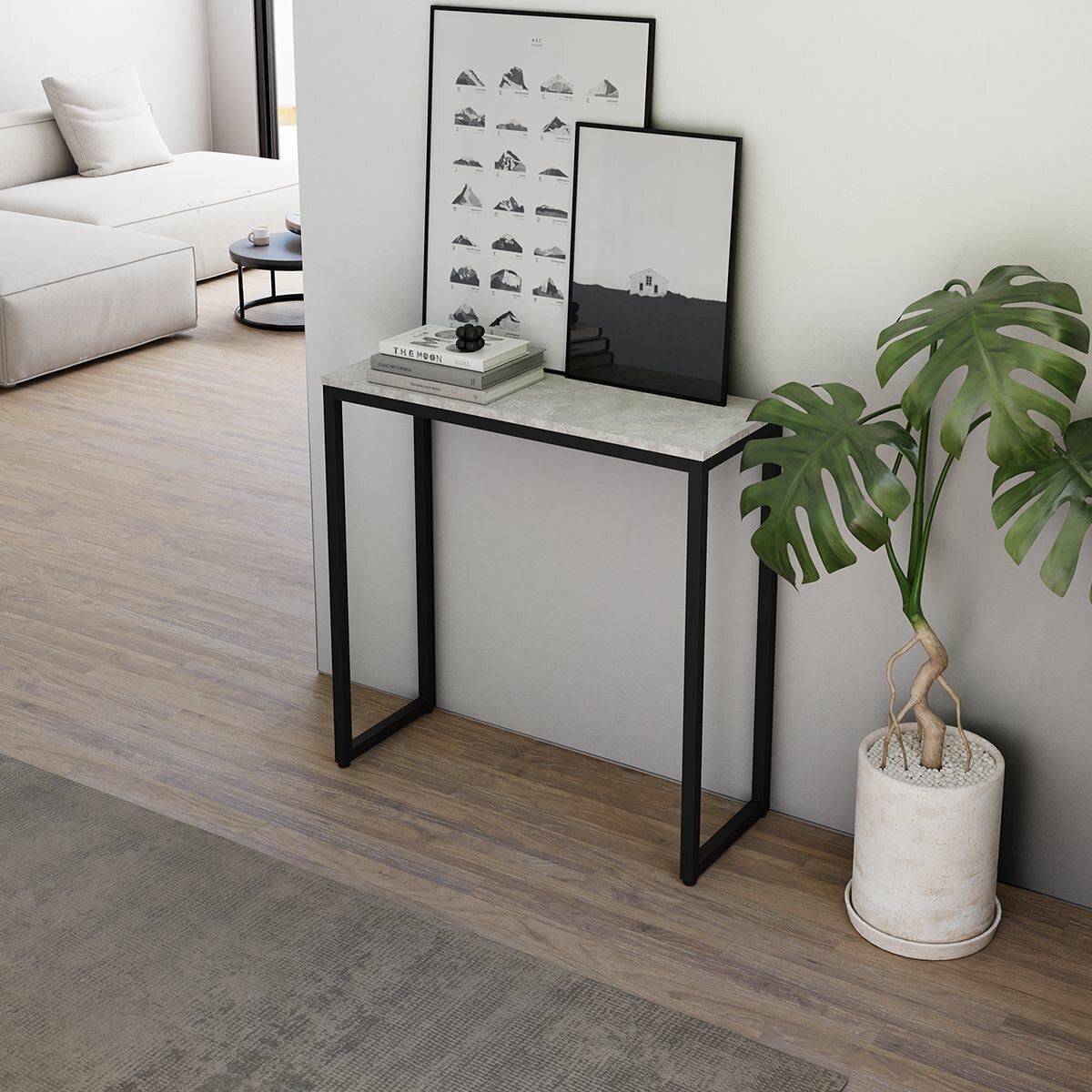 Туалетный столик консольный стол лофт, Белый / Оникс