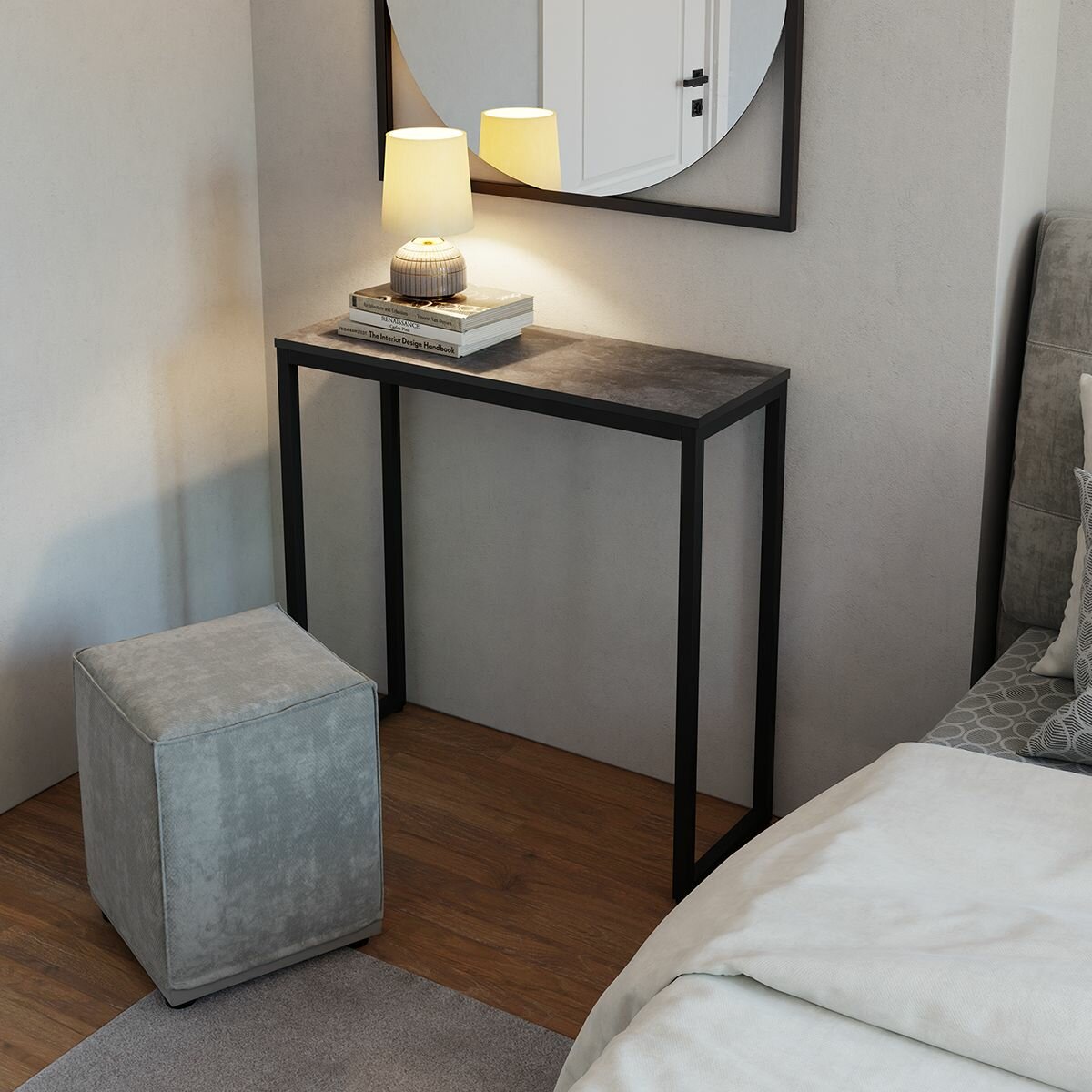 Купить Туалетный столик консольный стол лофт, Черный / Темный Цемент